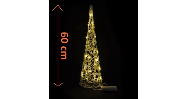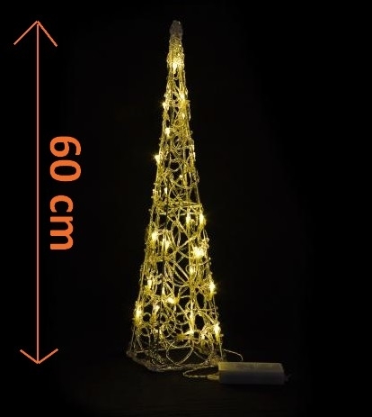Nápaditá dekorácia pre vonkajšie použitie, a to nielen v dobe vianočných sviatkov. Kužel je vysoký 60 cm, čierny a nájdete na ňom 30 ks teplých bielych LED svetiel, ktoré sa vyznačujú dlhou životnosťou a nízkou spotrebou energie. Ich svetlo Vás nielen zahreje, ale aj poteší na duši.