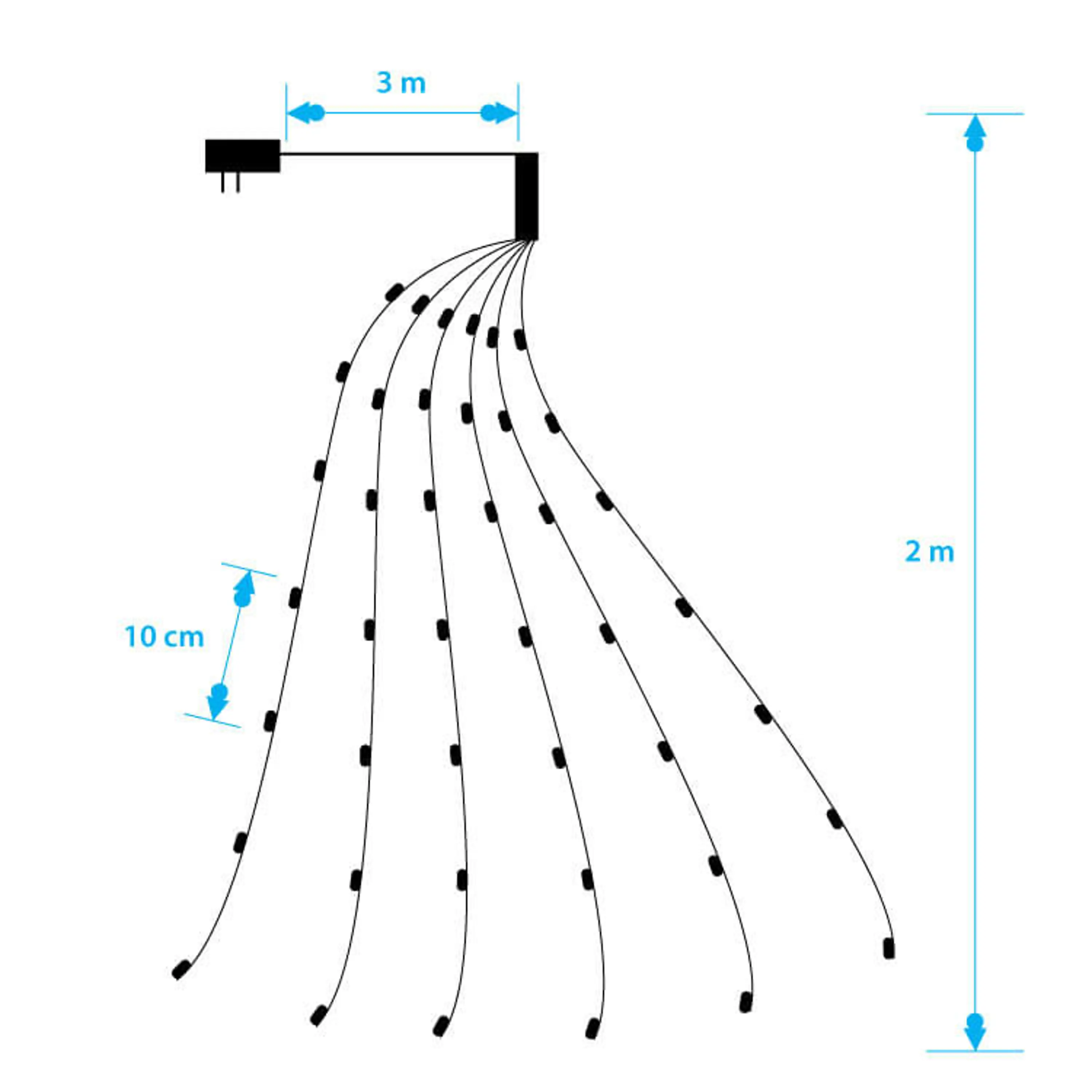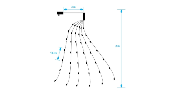 LED struna sa skladá zo šiestich dvojmetrových strún, ktoré vychádzajú z jedného miesta, kde je napájanie. Pozri nákres v galérii.