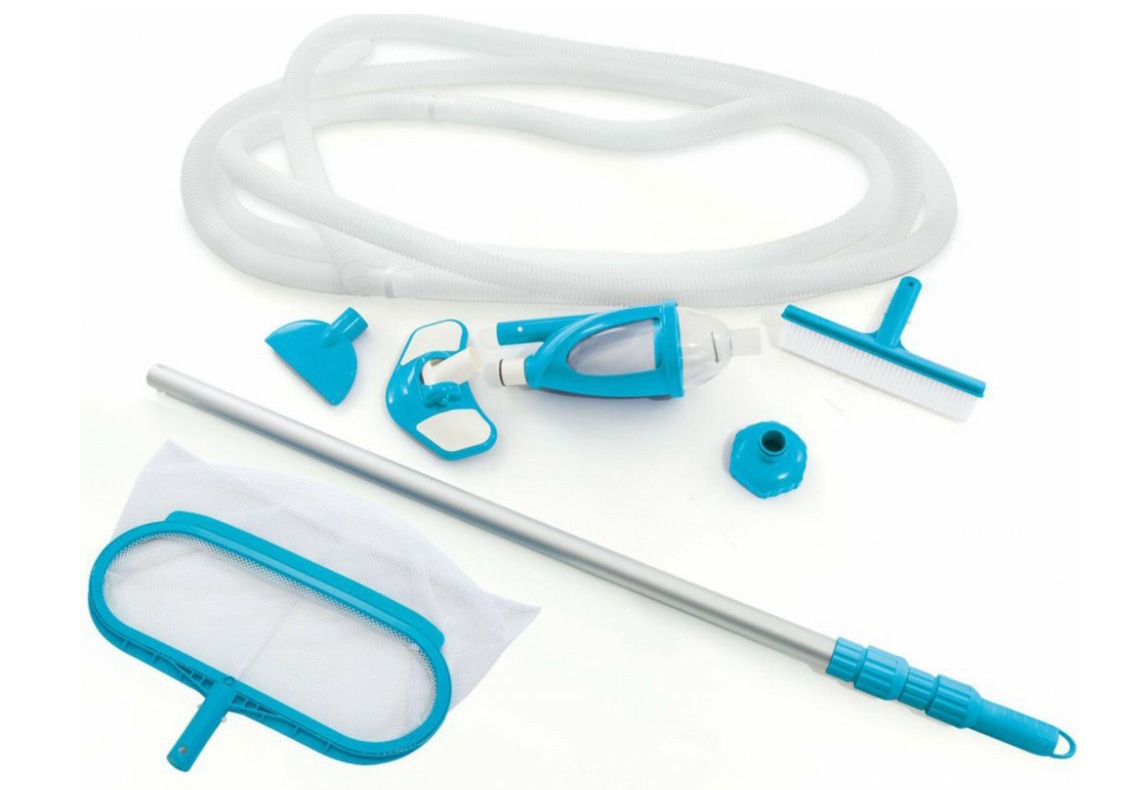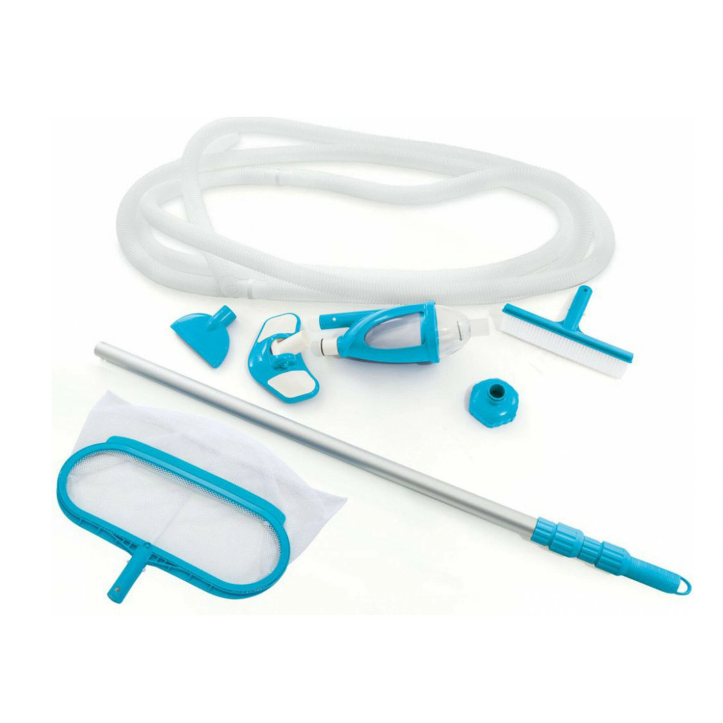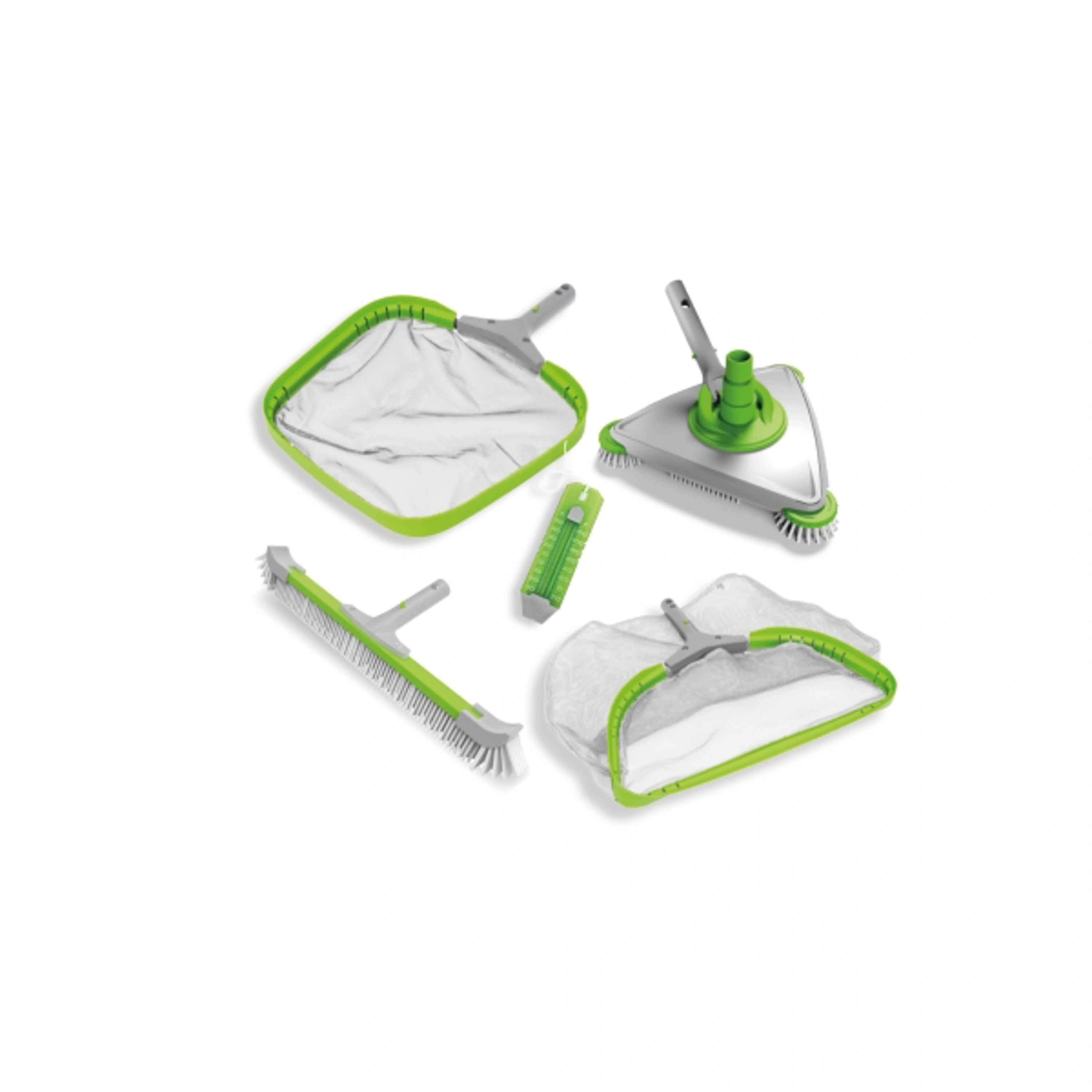 Komplatná sada Premium na čistenie nadzemných bazénov. Jednoducho napojíte na filtračný systém a môžete upratovať. Sada obsahuje vákuovú saciu hlavu s rotačnými kefami. kefa na steny, hladinovú aj dnovú sieťku a teplomer.