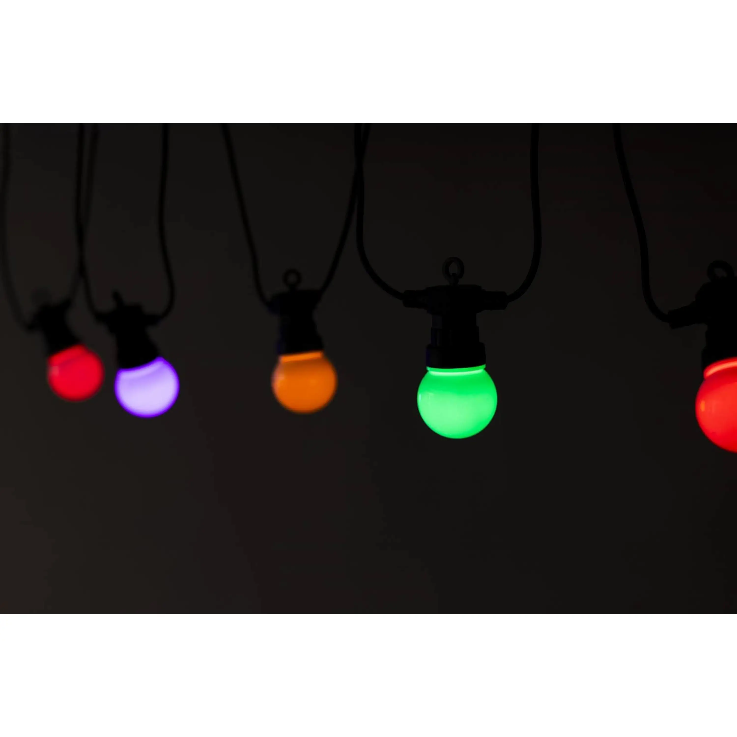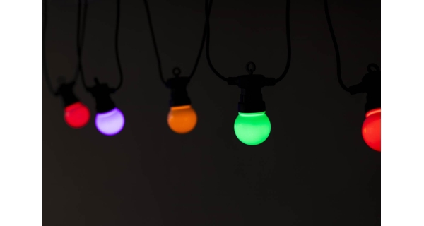 Svetelná párty reťaz so žiarovkami rozjasní vašu miestnosť aj záhradu. Reťaz má 20 farebných žiaroviek, ktoré disponujú 100 LED.