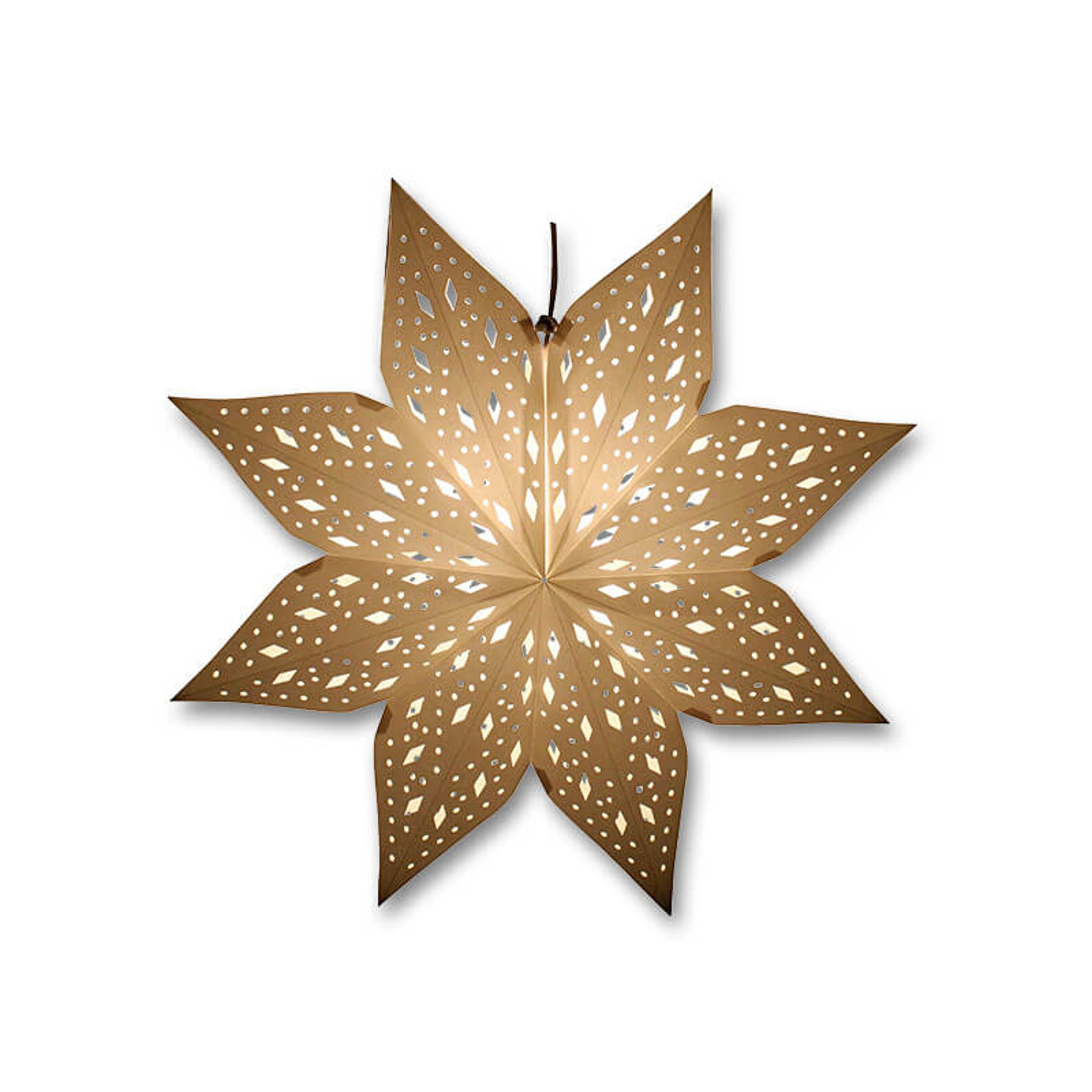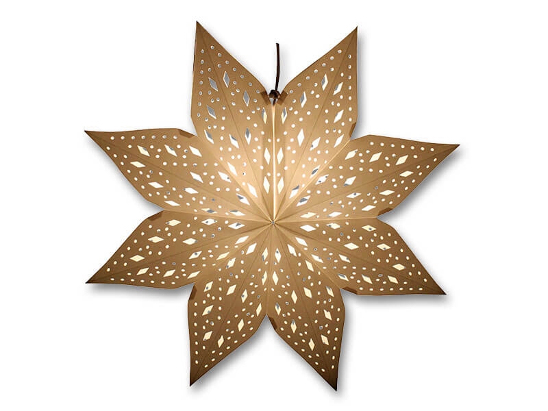 Originálna vianočná dekorácia v podobe papierovej vločky s perforovaným vzorom a so zabudovanou svetelnou inštaláciou.