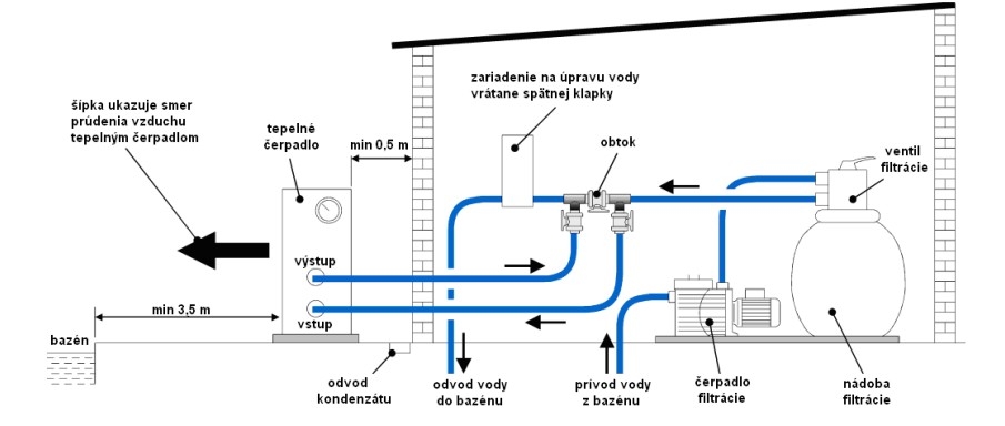 Tepelné čerpalo nie je možné prevádzkovať bez zapnutej filtrácie. Nie je možné použiť časovať na súčasné vypnutie / zapnutie prevádzky tepelného čerpadla a filtrácie.