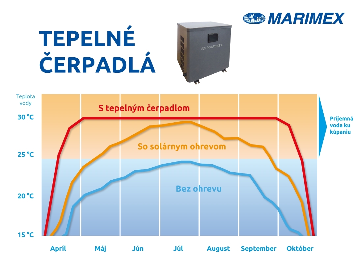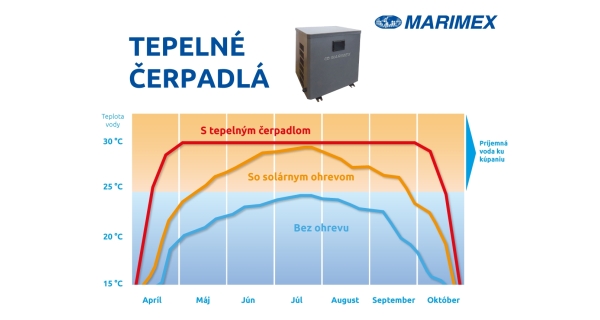 Tepelné čerpadlo efektívne prehrieva vodu v bazéne aj bez slnečného žiarenia. Kúpaciu sezónu tak umožňuje začať už za prvých teplejších dní a ukončiť až v období októbrových mrazíkov.