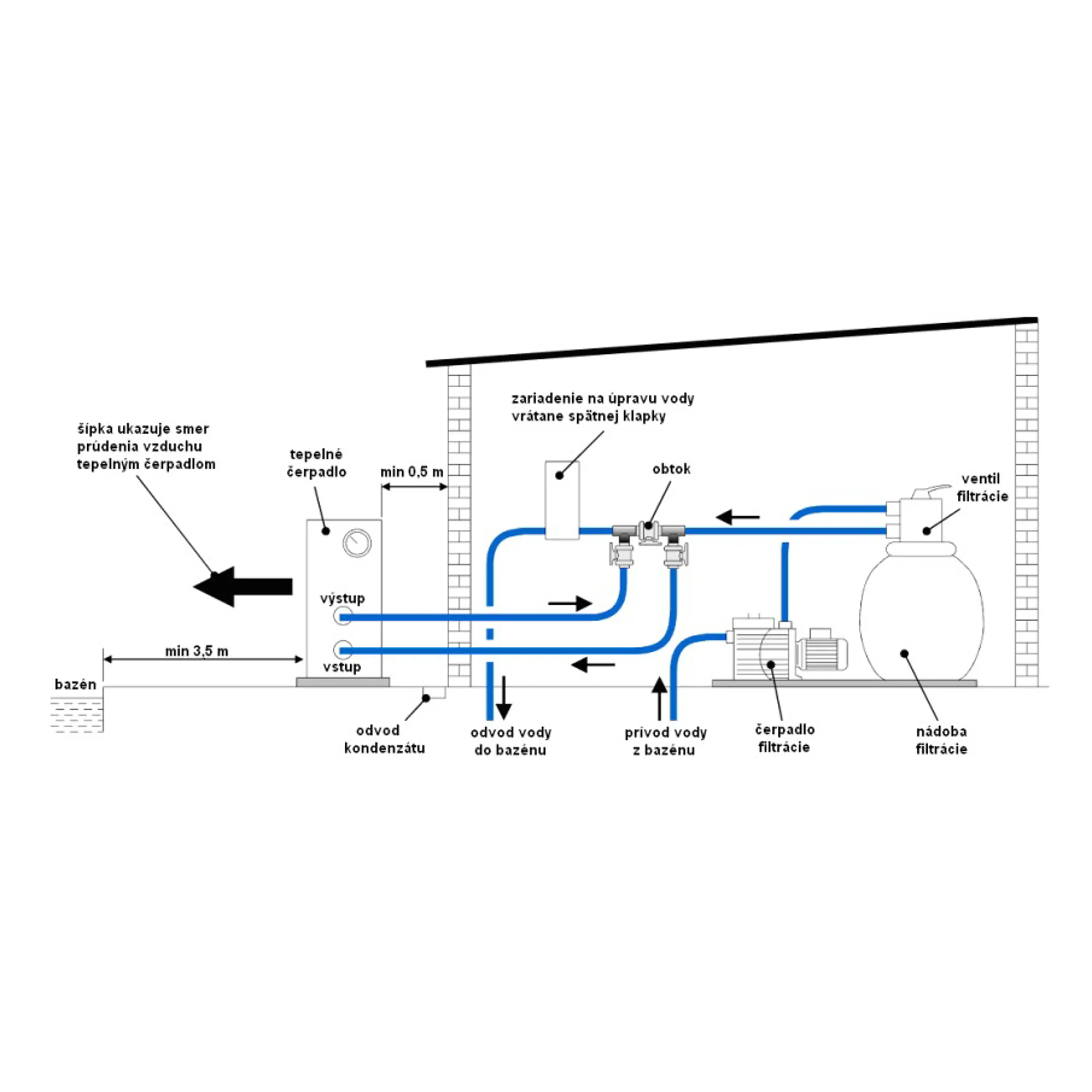 Tepelné čerpalo nie je možné prevádzkovať bez zapnutej filtrácie. Nie je možné použiť časovať na súčasné vypnutie / zapnutie prevádzky tepelného čerpadla a filtrácie.