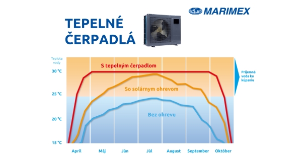 Predĺženie kúpacej sezónyTepelné čerpadlo efektívne prihrieva vodu v baz=ene i bez slnečného žiarenia. Kúpaciu sezónu tak umožňuje zahájiť už za prvých teplejších dní a ukončiť až v období okt=obrových mrazov. |