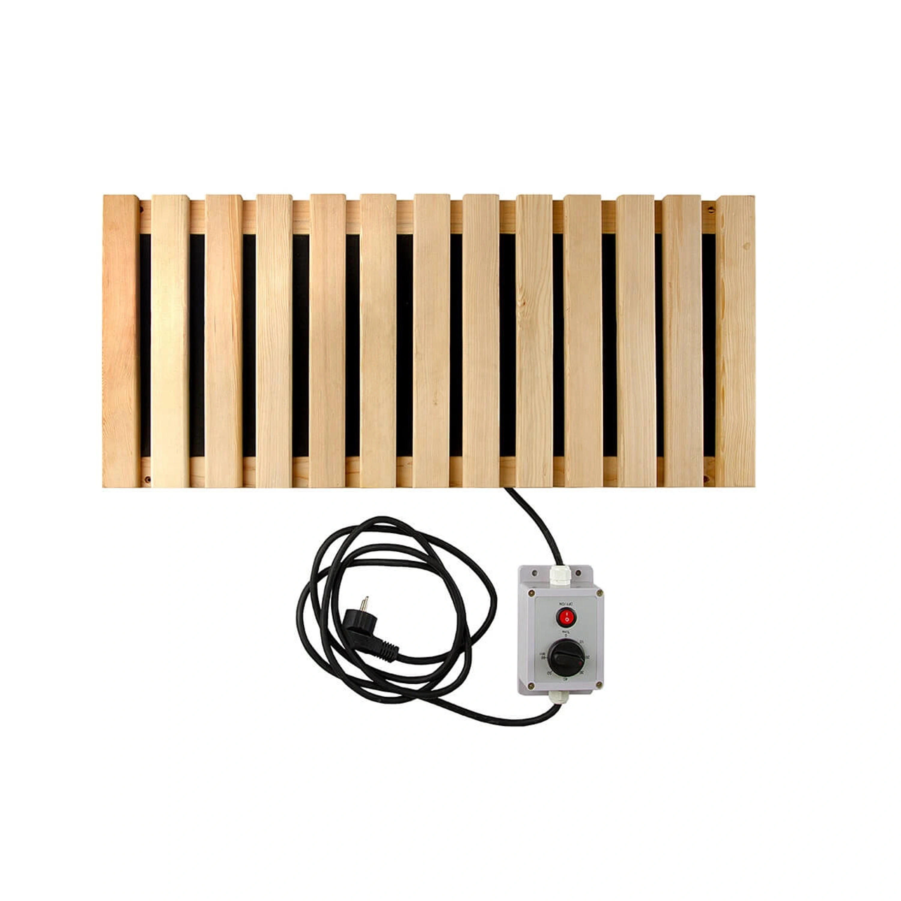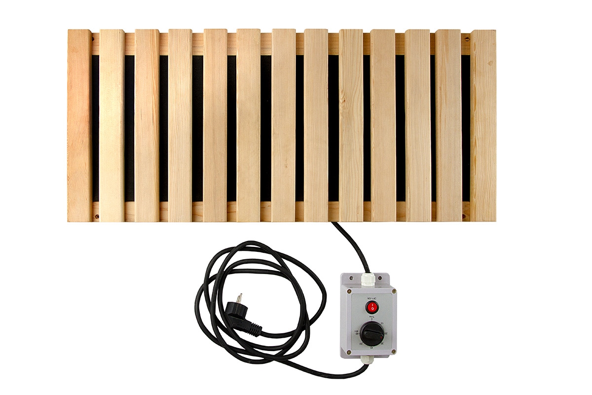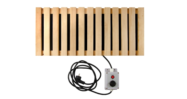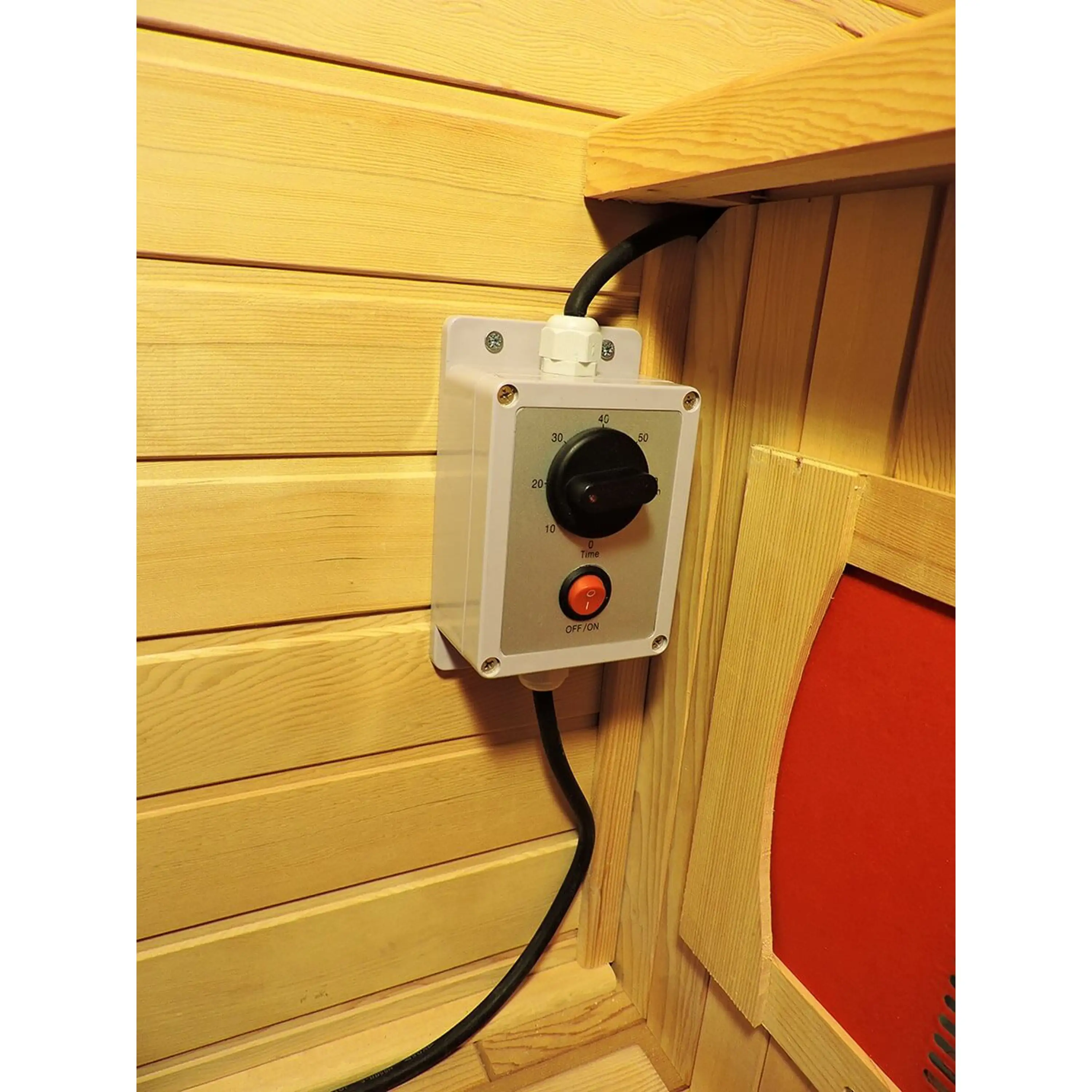Príkon karbónového žiariča je 200W, zapája sa do štandardnej zásuvky (230V), má integrovaný spínač s mechanickým časovačom (bezpečné vypnutie po max. 1 hodine prevádzky). Inštalačná sada vrátane záslepky na prechod stenou infrasauny) nie je súčasťou balenia.