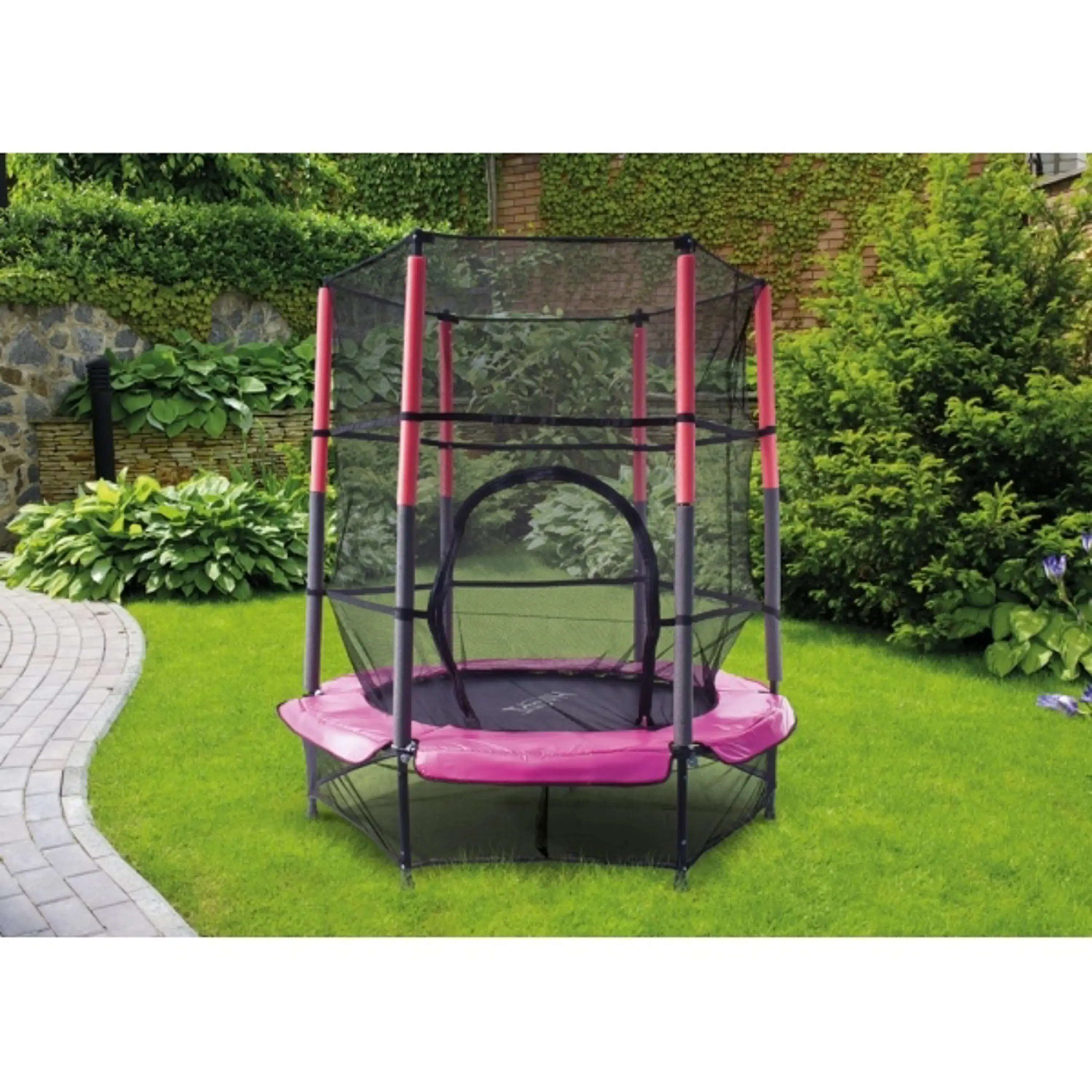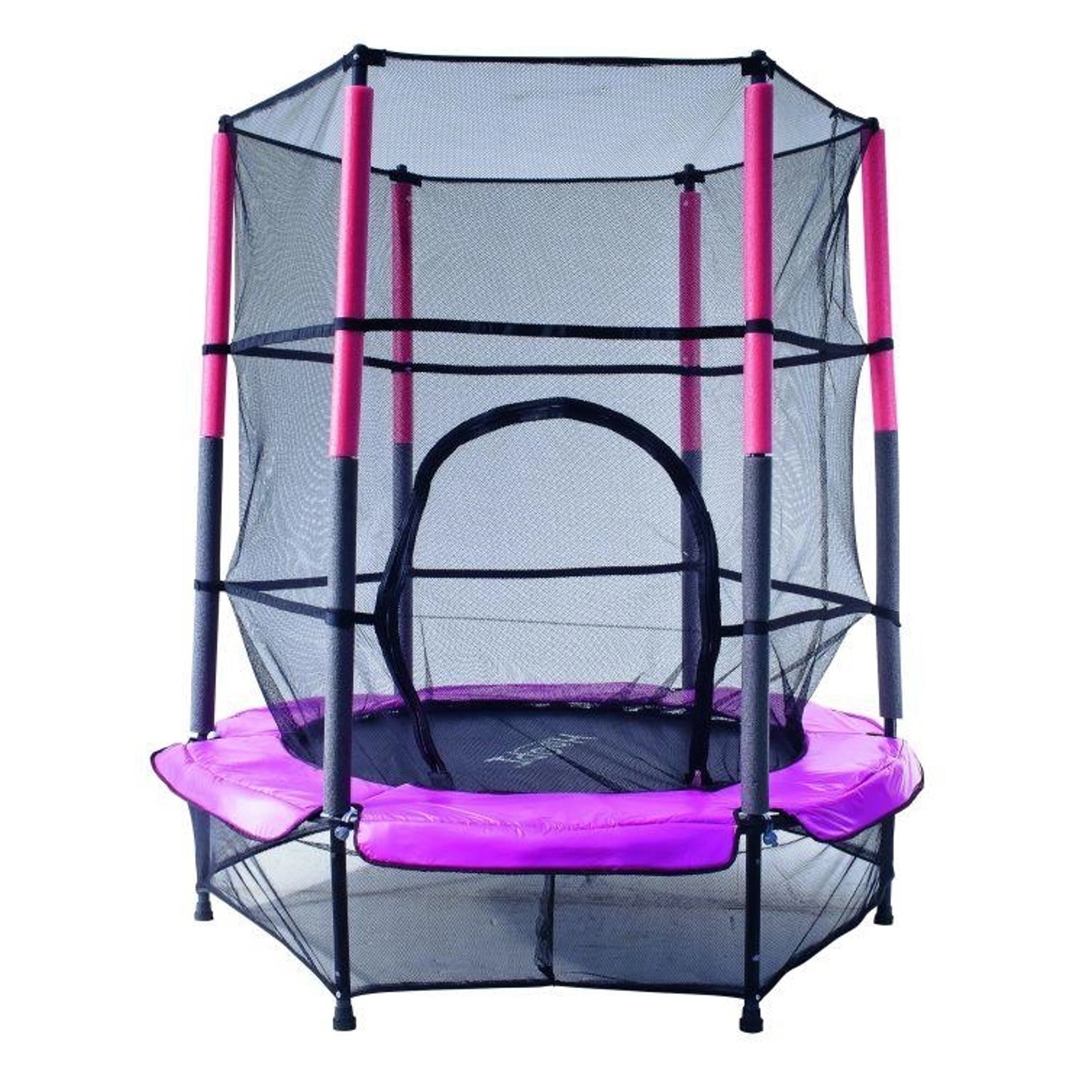 Trampolína HOOPI® Kids ružová s celkovým priemerom 1,4 m, vrátane vnútornej ochrannej siete, poteší najmenšie deti. Dokáže uniesť deti do 50 kg váhy a špecialitou tohto modelu je bezpružinový systém uchytenia. Skákacia plocha je ukotvená k rámu pomocou 30 elastických gúm, čo je pre naozaj malé deti bezpečnejšie - nehrozia úrazy spôsobené pádom na časť s pružinami. O stabilitu sa postará celkom 6 tyčových nôh.