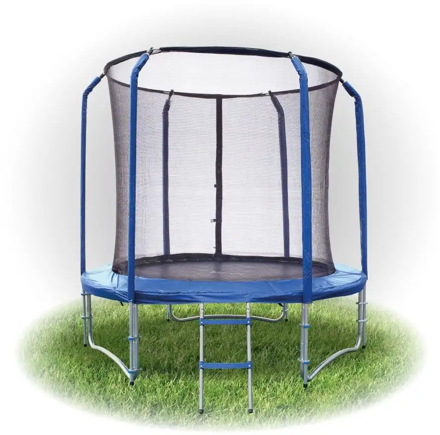 Ochranná sieť je bezpečnejšia ako vonkajší typ - bráni prístupu skákajúceho do časti s pružinami. Vstupný priestor je zaistený troma prackami a bráni vypadnutiu. Tyče sú obalené ochranným návlekom z mäkčenej peny. Nohy trampolíny sú samostatné a dosahujú až na zem, tým je zvýšená stabilita celej trampolíny. Spojenie tyčí nôh trampolíny a siete je istené špeciálnymi sponami.