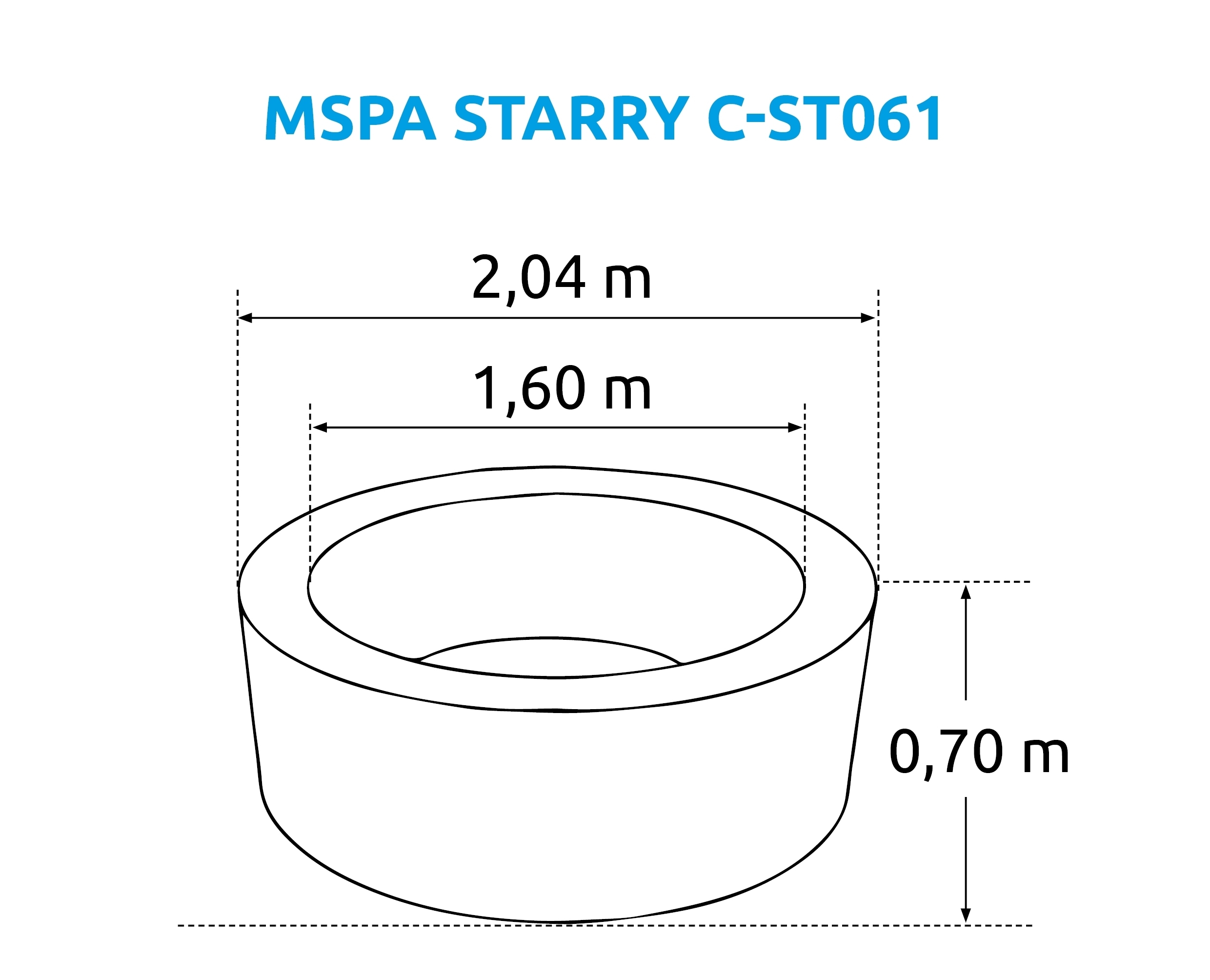 Nafukovacia vírivka MSpa Starry C-ST061 má v balení LED opasok, modro svietiaci, s jemným tlmiacim efektom, vďaka ktorému navodíte ešte lepší wellness zážitok. Úplne nový systém ANTI-ICING bude neustále dohliadať na vašu vírivú vaňu a strážiť bezpečnú úroveň teploty.
