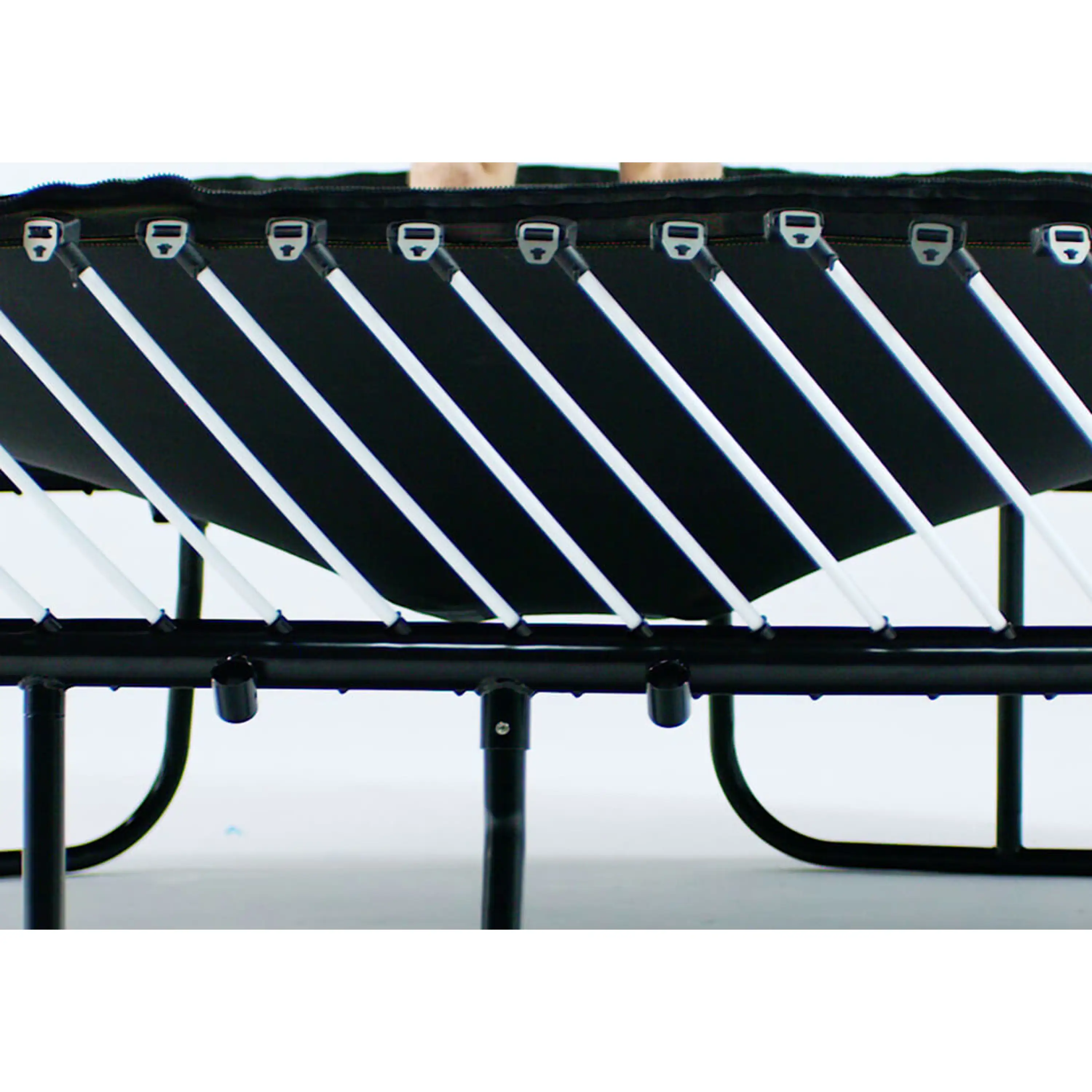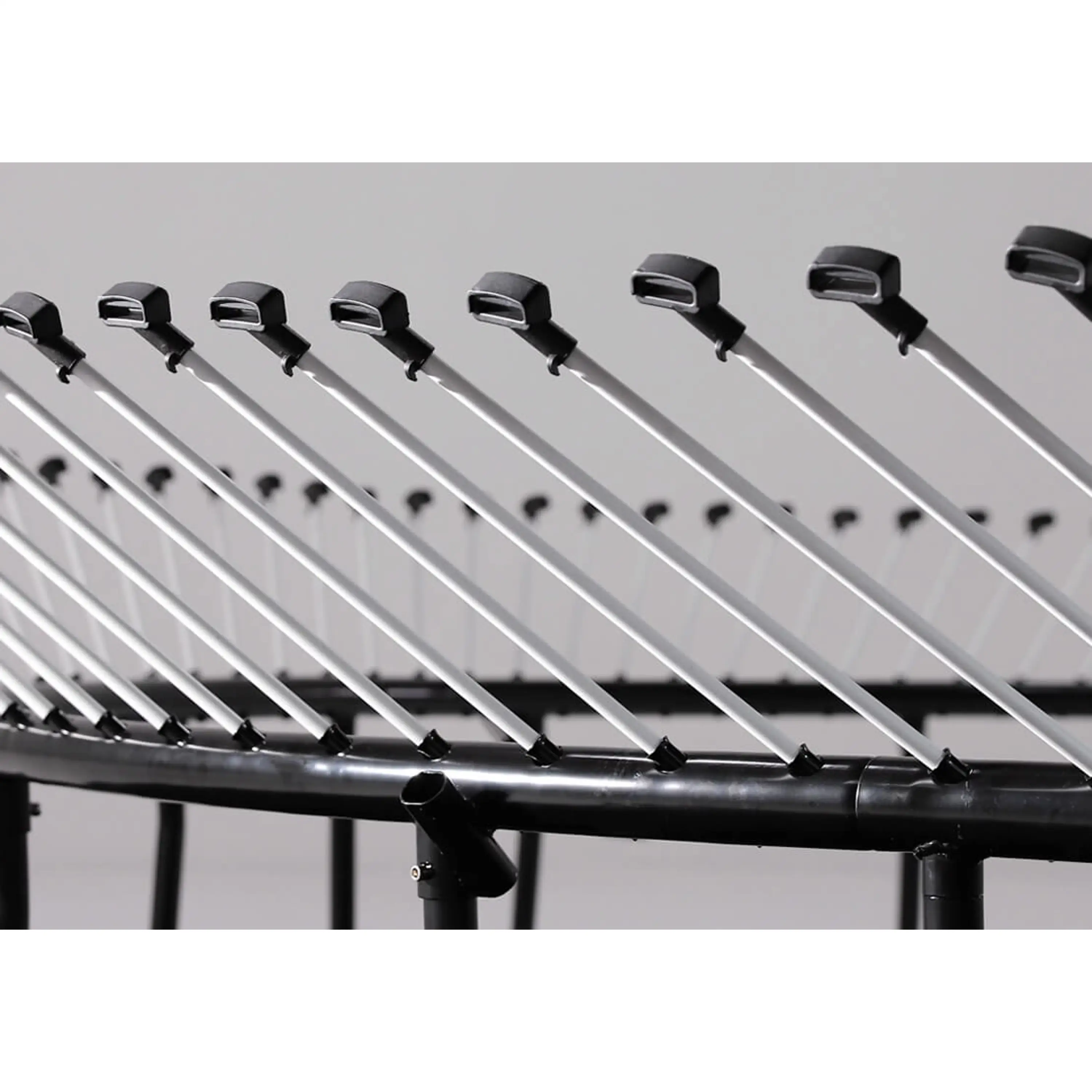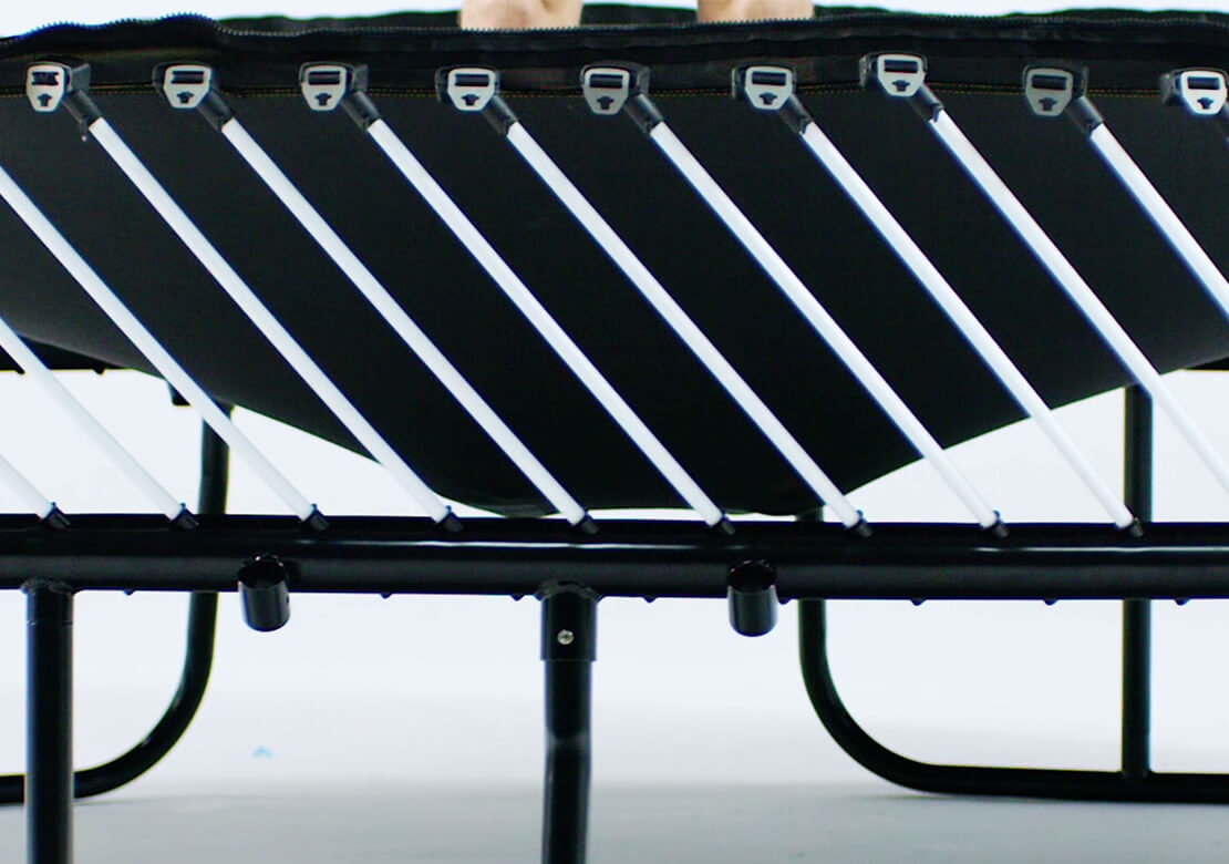 Unikátne konštrukčné riešenie umožňuje využiť 100% priemeru trampolíny na skákanie, a to pri zachovaní vysokých nárokov na bezpečnosť a stabilitu. Pružiaci systém je umiestnený pod skákacou plochou trampolíny.
