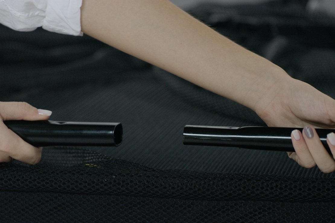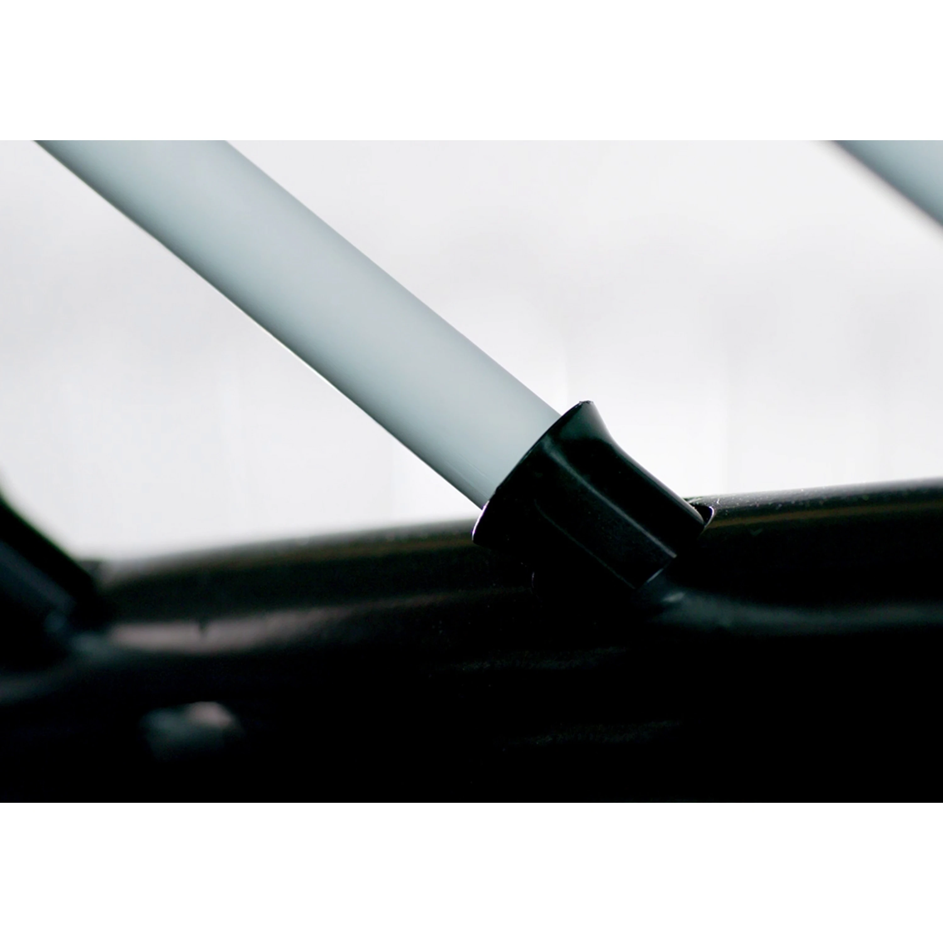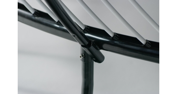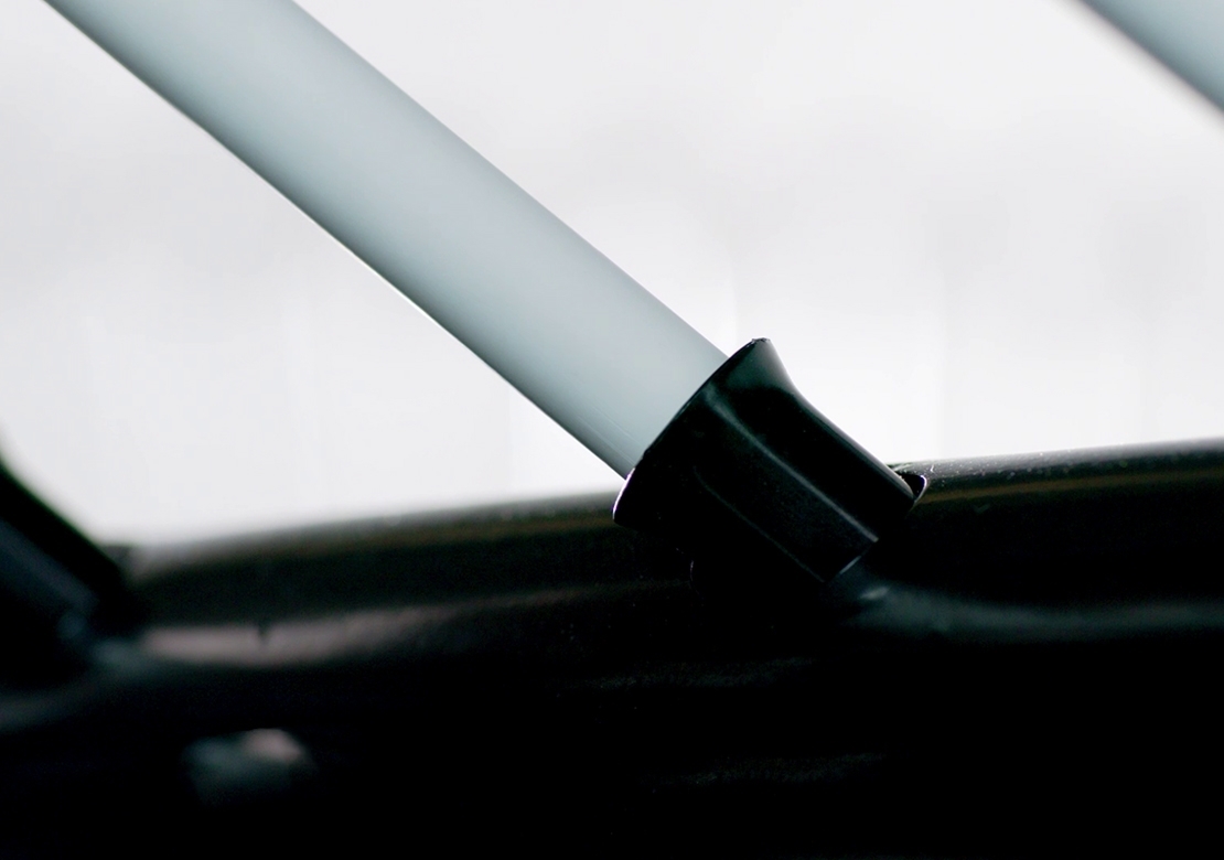 - oporné tyče sú z 2 dielov (zasúvací koniec je plochej konštrukcie, toto spojenie zaisťuje pevnosť a ľahkú montáž bez náradia)