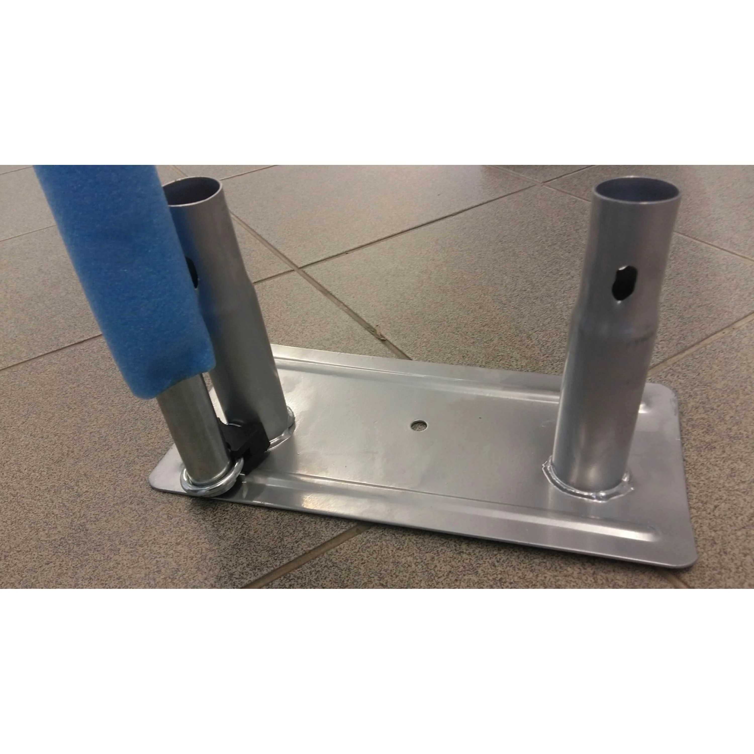 Dokonalú stabilitu zabezpečuje šesť plochých stojok o rozmere 300 x 145 mm. Hrúbka oceľovej stojky je 3 mm. Trampolína je určená pre zapustenie do zeme, kde skákacia plocha je na úrovni povrchu. Výhodou takéhoto riešenia je bezpečnosť - nikto nemôže vniknúť pod skákaciu plochu a zraniť sa. Minimálna hĺbka jamy pod trampolínou je 80 cm a je potrebné ju vyložiť geotextíliou.