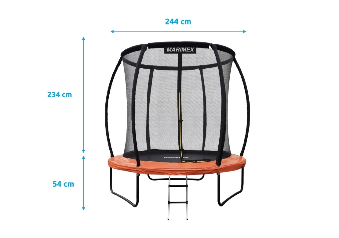 - celková výška trampolíny vrátane ochrannej siete v najvyššom bode: 234 cm