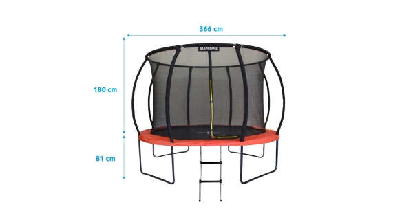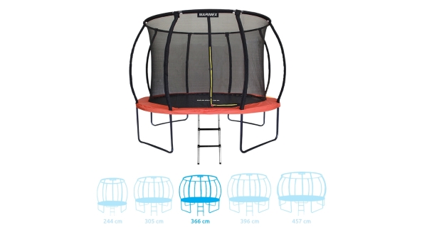 Trampolína Marimex Premium je skvelým doplnkom každej záhrady. Deti skákanie na trampolíne milujú a pri skákaní si ľahko zacvičia aj dospelí – nosnosť je až 150 kg. Dokonalú stabilitu zaisťujú štyri nohy v tvare písmena U.