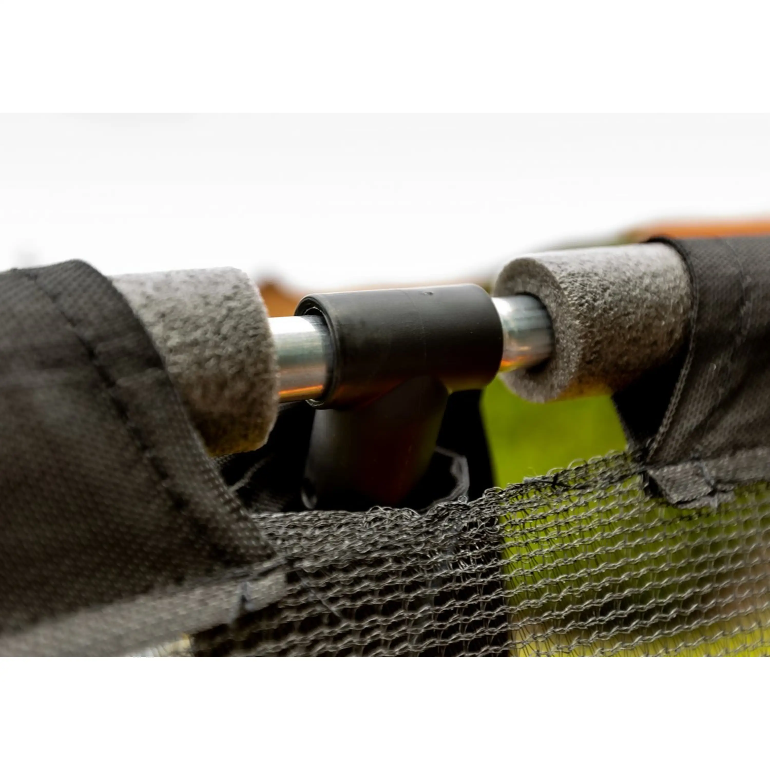Vnútornú ochrannú sieť nájdete priamo v balení, nemusíte si ju dokupovať zvlášť. Vnútorná ochranná sieť je bezpečnejšia ako vonkajšia sieť - bráni prístupu skákajúceho do časti s pružinami. Vstupný priestor je zaistený tromi prackami a bráni vypadnutiu. Tyče sú obalené ochranným návlekom z mäkčenej peny. Nohy trampolíny sú samostatné a zvyšujú stabilitu celej trampolíny. Spojenie tyčí nôh trampolíny a siete je istené špeciálnymi sponami.