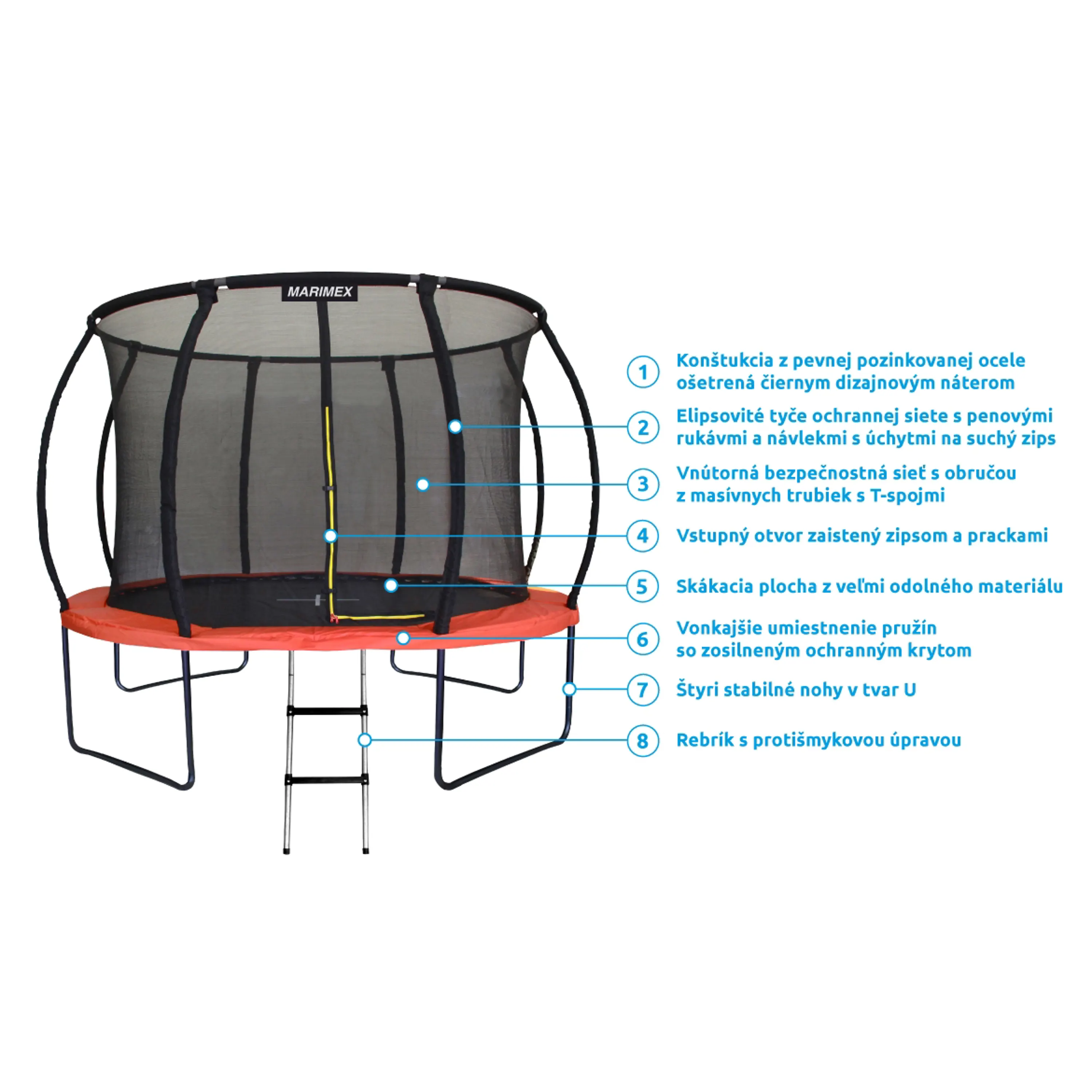 Na bezpečnostné prvky trampolín Marimex Premium je kladený veľký dôraz, preto sú radené medzi najbezpečnejšie a najspoľahlivejšie na slovenskom trhu.