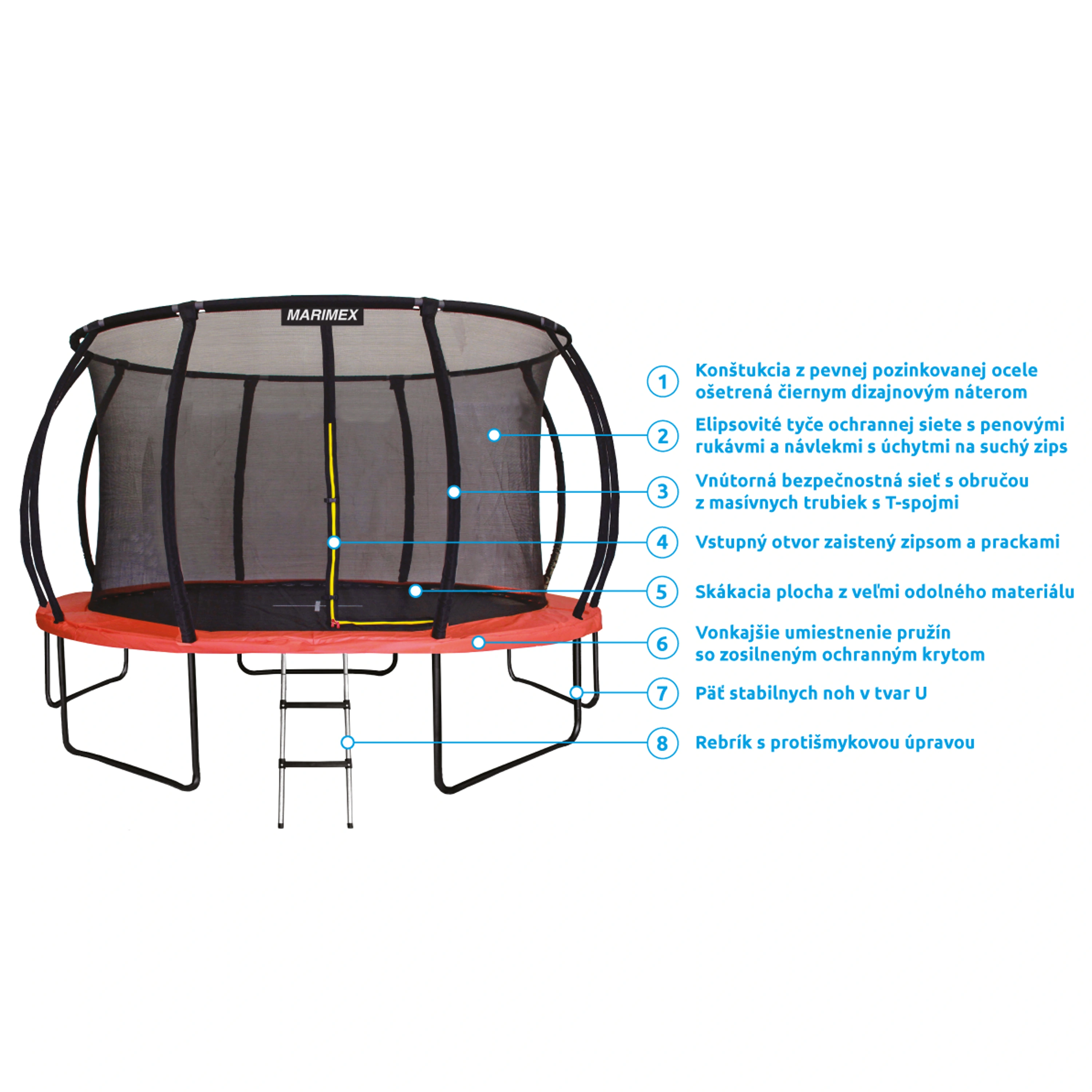 Na bezpečnostné prvky trampolín Marimex Premium sa kladie veľký dôraz, preto sa radia medzi najbezpečnejšie a najspoľahlivejšie na slovenskom trhu.