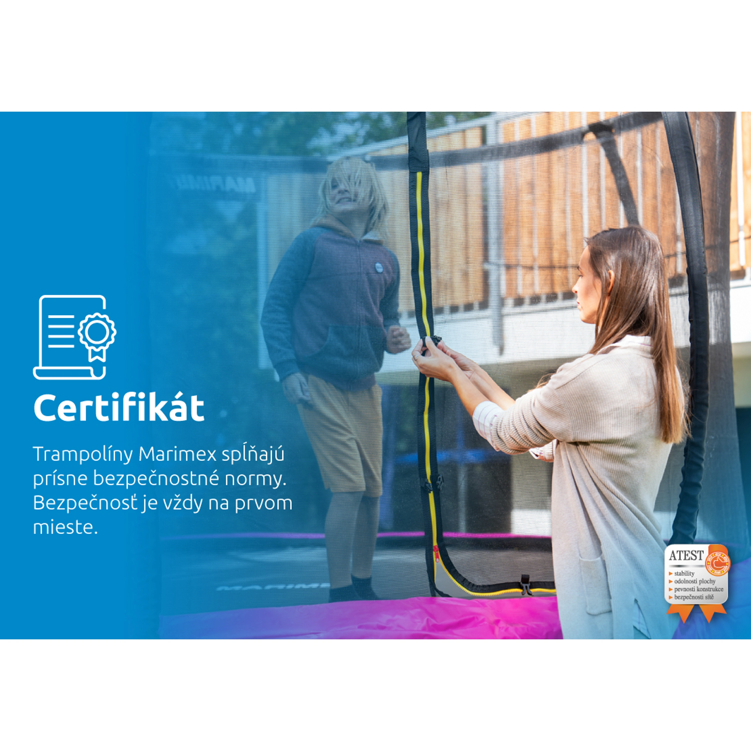 Certifikácia bezpečnostiVšetky naše trampolíny spĺňajú prísne bezpečnostné normy a sú certifikované skúšobňou Intertek. Bezpečnosť trampolín je pre nás prioritou. |