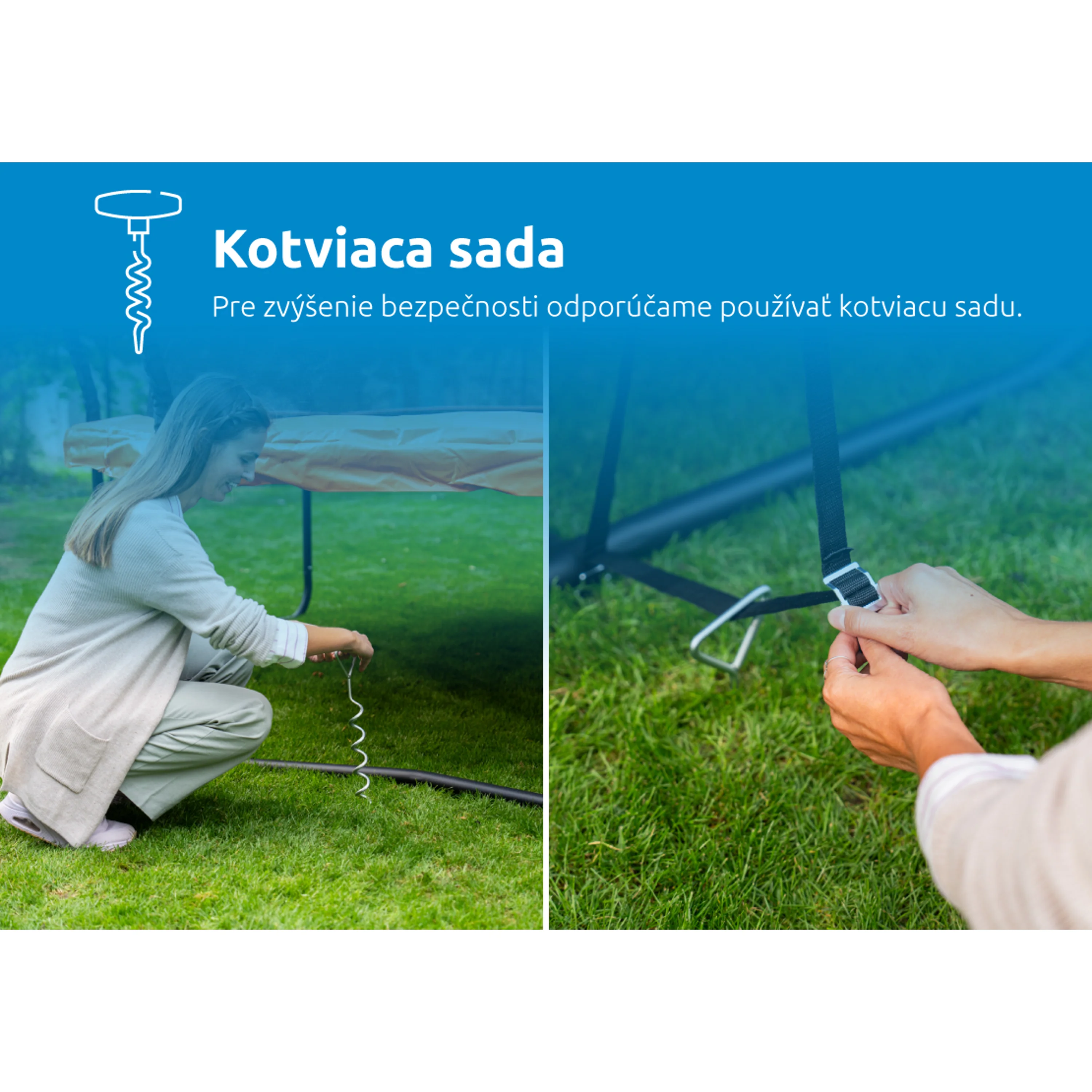 127,42 €Vybrali sme dôležité produkty pre vašu bezpečnosť - kotviacu sadu, ktorá spoľahlivo upevní trampolínu do zeme a spodnú ochrannú plachtu, zabraňujúcu vniknutiu detí a zvierat pod trampolínu.