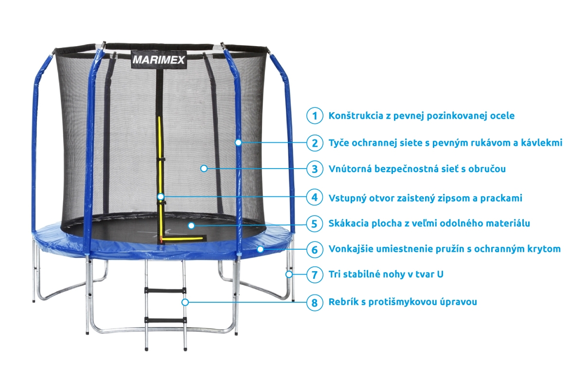 Trampolína Marimex Premium 244 cm + vnútorná ochranná sieť + rebrík ZDARMA