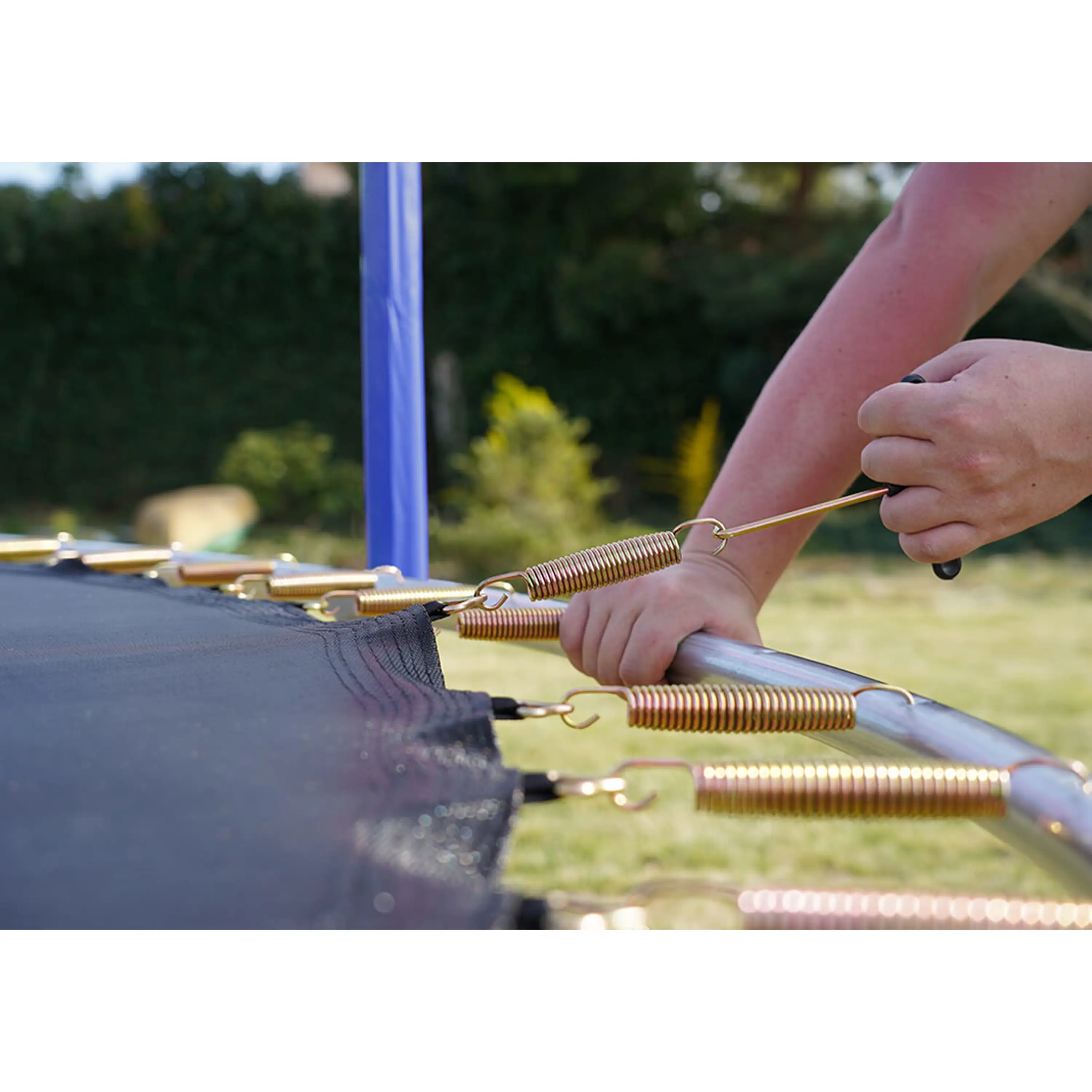 Vnútorná ochranná sieťVýnimočnosť vnútornej ochrannej siete spočíva v umiestnení v tesnej blízkosti skákacej plochy. Bráni vypadnutiu, kontaktu s rámom a stúpeniu do oblasti pružín. |