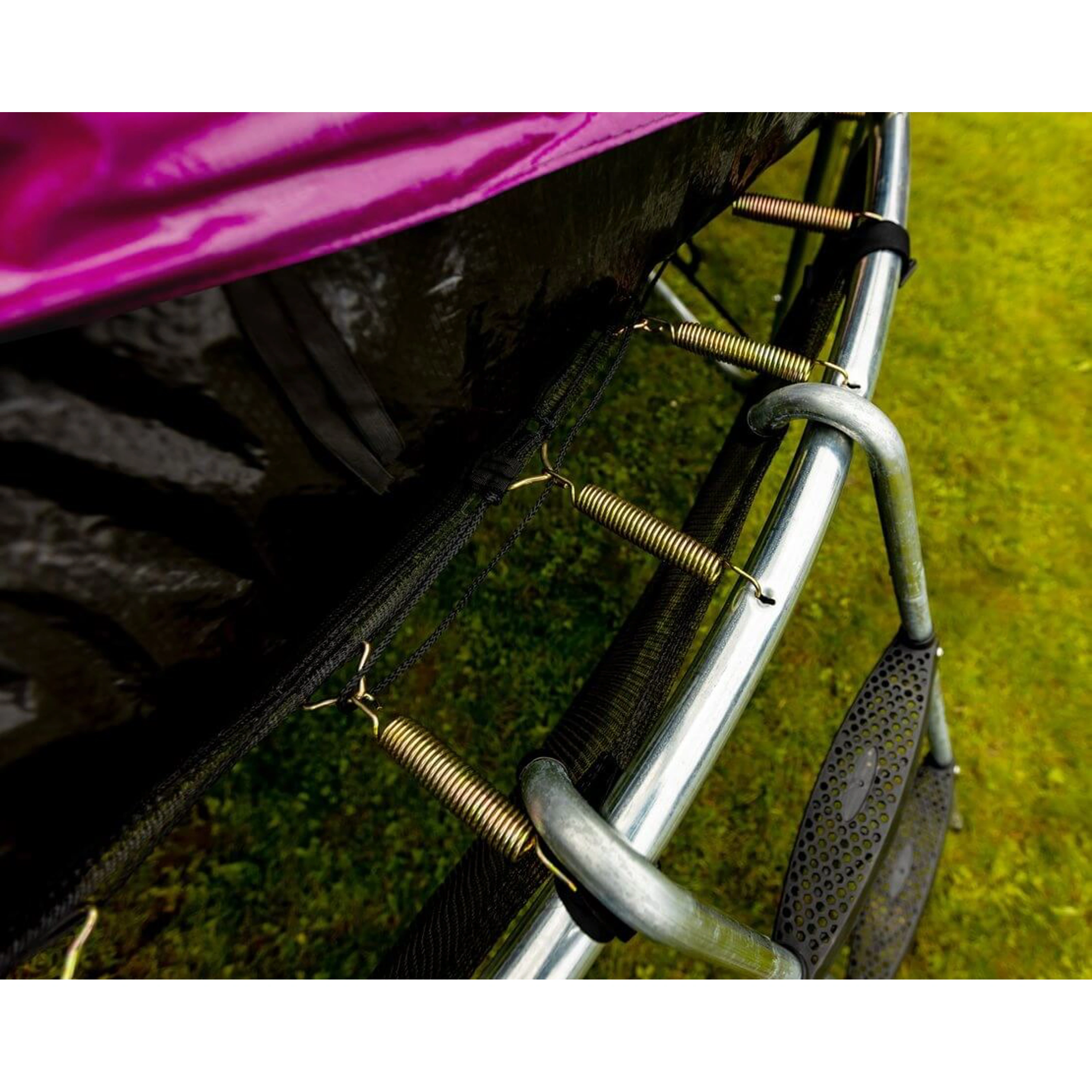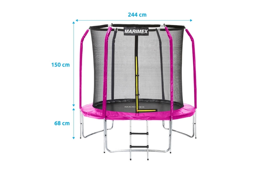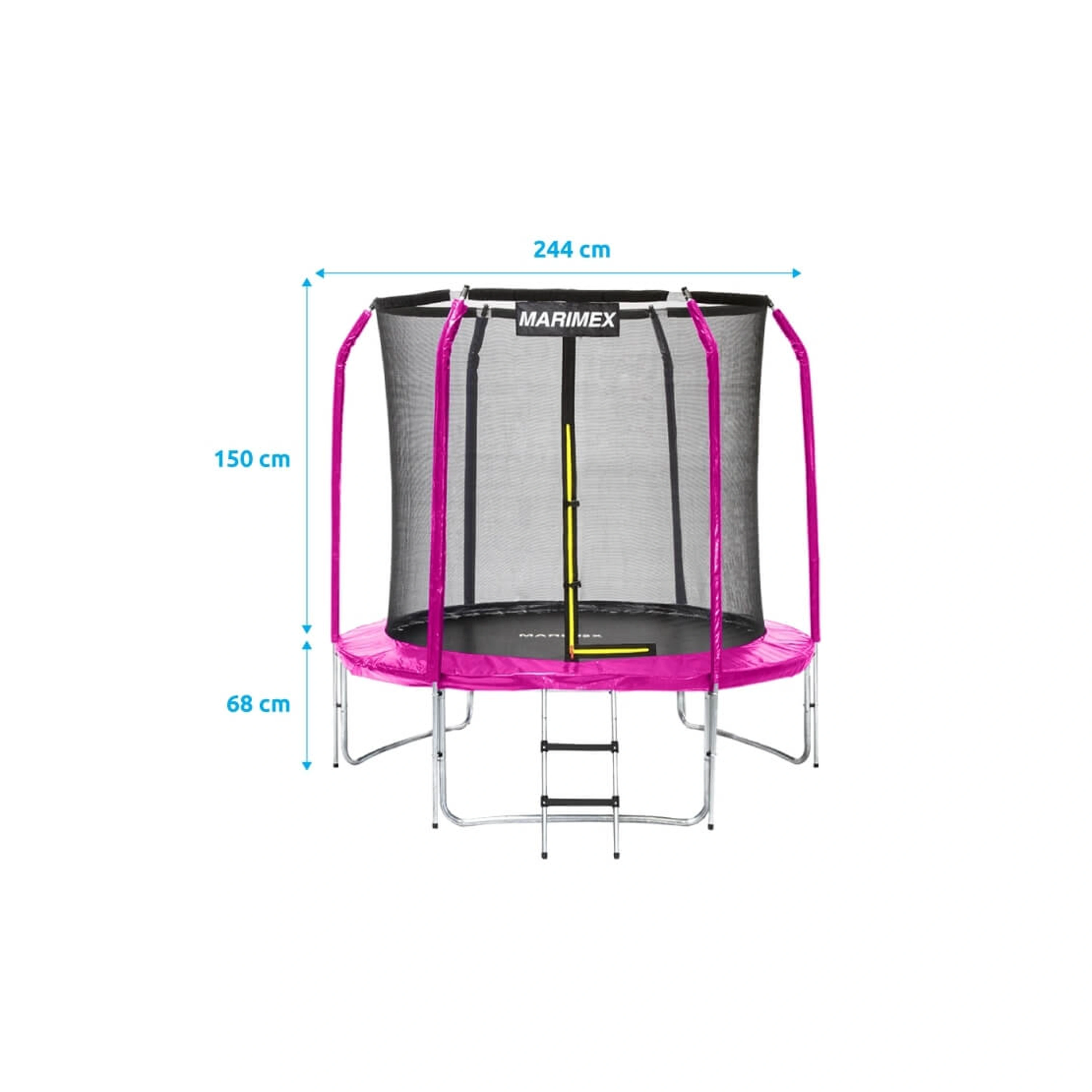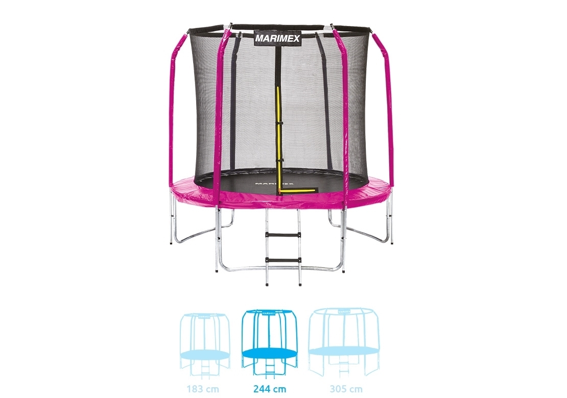 Vnútornú ochrannú sieť nájdete priamo v balení, nemusíte si ju dokupovať zvlášť. Vnútorná ochranná sieť je bezpečnejšia než vonkajšia sieť - bráni prístupu skákajúceho do časti s pružinami. Vstupný priestor je zaistený tromi prackami a bráni vypadnutiu. Tyče sú obalené ochranným návlekom z mäkčenej peny. Nohy trampolíny sú samostatné a zvyšujú stabilitu celej trampolíny. Spojenie tyčí nôh trampolíny a siete je istené špeciálnymi sponami.