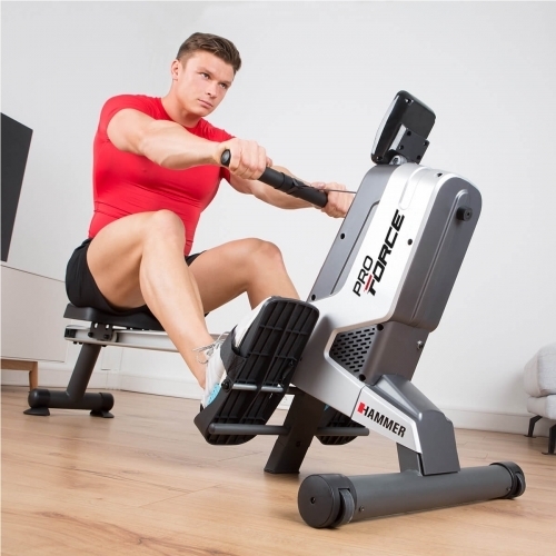 HAMMER PRE FORCE je veslovací trenažér ideálny ako pre začiatočníkov, tak športovo zamerané osoby v domácom prostredí pre pravidelné tréningy. Je vybavený tichou, magnetickou brzdou, precízne prevedenou mechanikou, kvalitnými komponentmi a modernou elektronikou. Stroj disponuje úplne plynulým a komfortným chodom. Robusná rámová konštrukcia s ložiskami v pojazde zaručuje dlhú životnosť stroja aj pri pravidelnom využití.