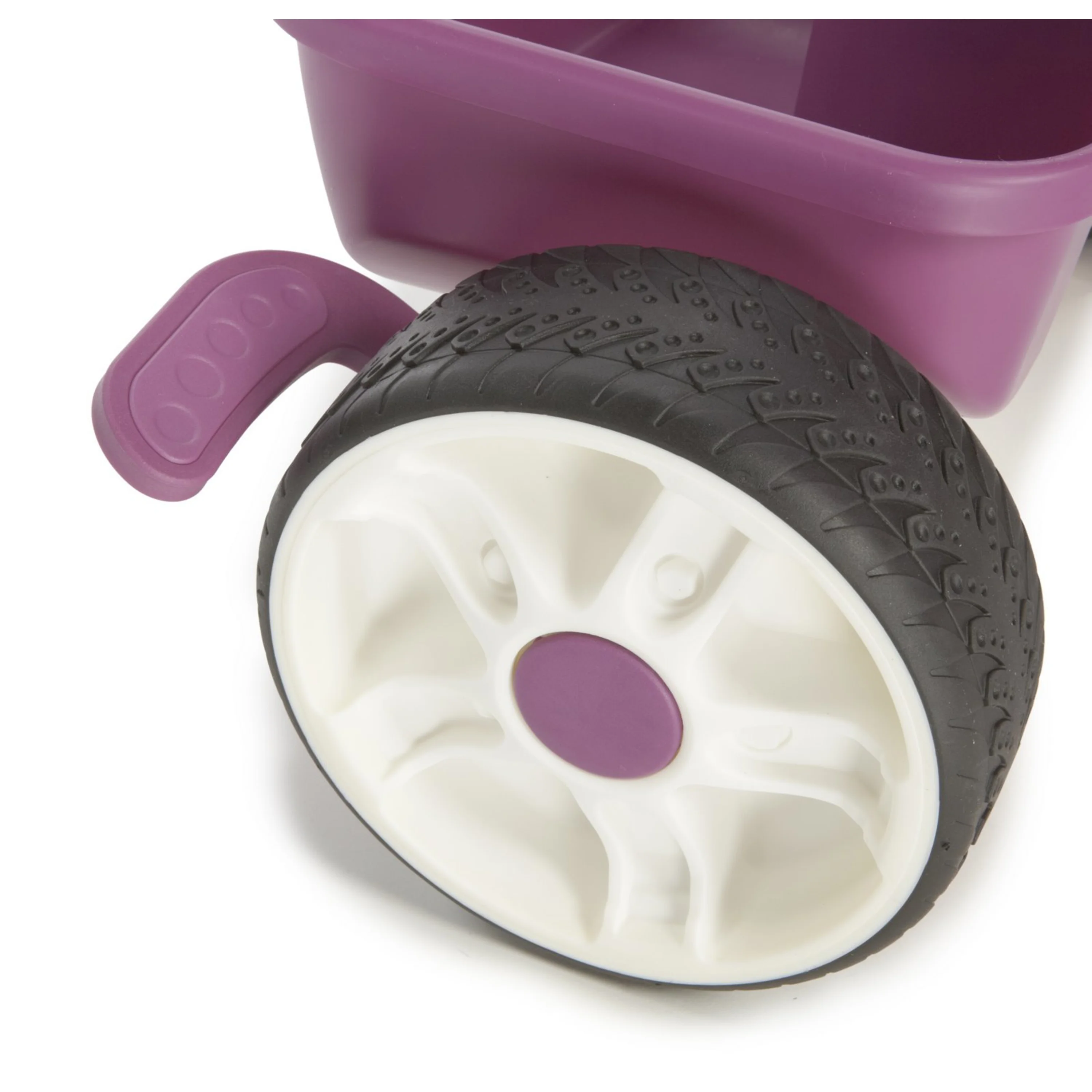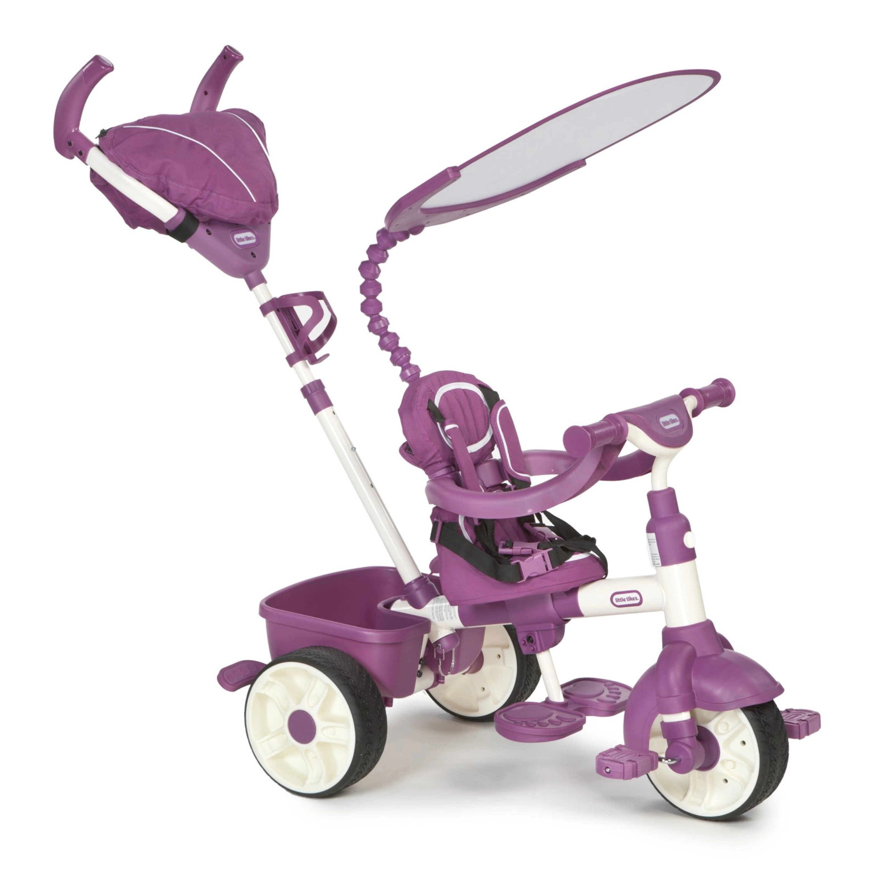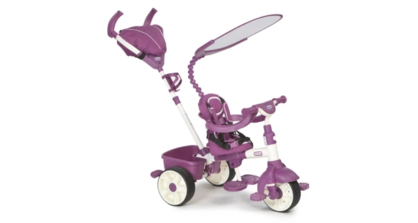 Kolesá sú pevné a sedadlo je nastaviteľné do 4 polôh . Trojkolka je vybavená päťbodovým bezpečnostným pásom , nastaviteľnou a odnímateľnou strieškou, protišmykovými pedálmi, držiakom na pitie a extra veľkým úschovným priestorom. Na výsuvnej tyči je primontované vrecúško, do ktorého si rodičia môžu odložiť predmety, ktoré chcú mať stále po ruke .