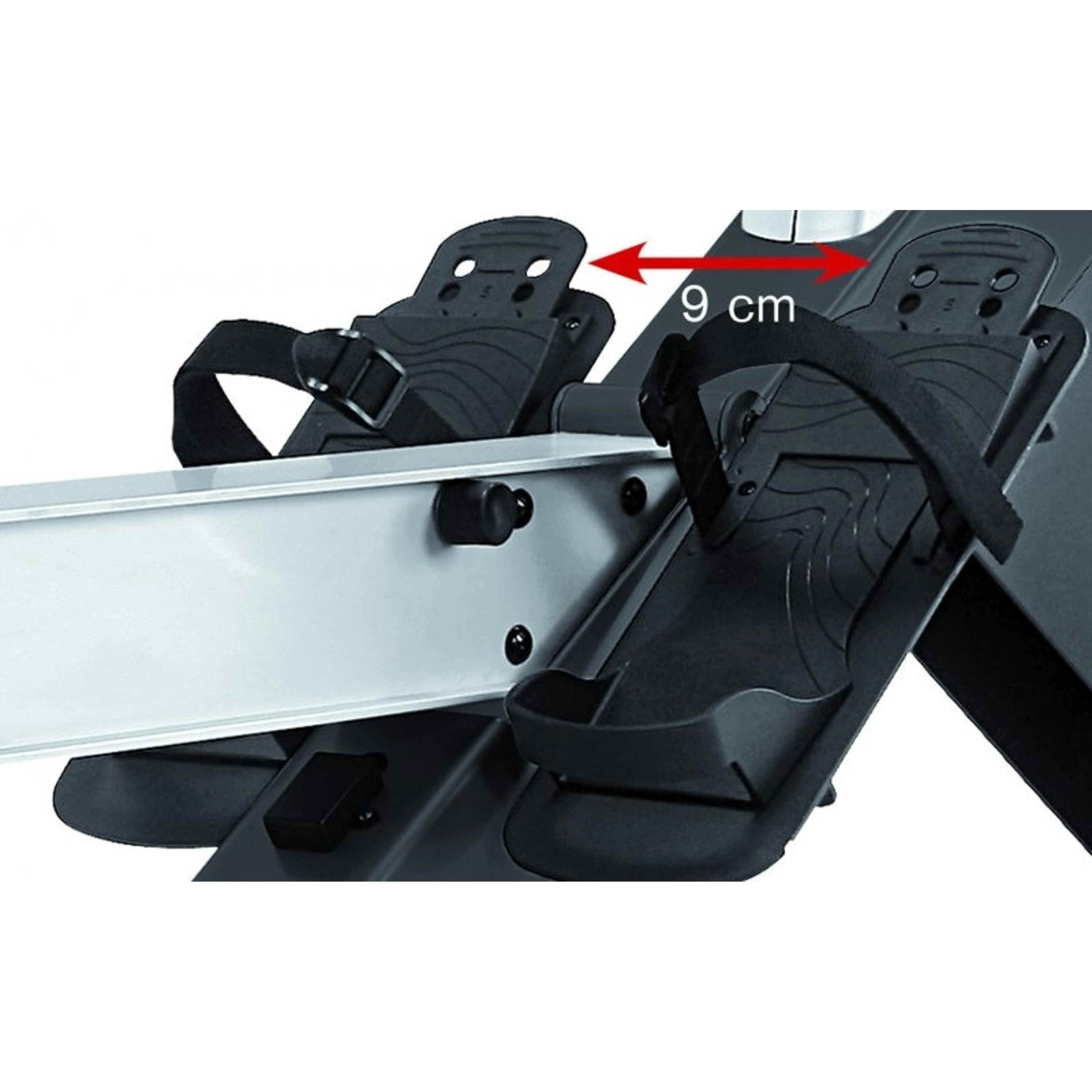 Veslovací trenažér možno sklopiť do vertikálnej polohy pre úsporu miesta, pokiaľ práve necvičíte. Rozmery po zložení sú 148 x 50 x 196 cm.