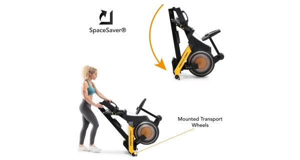 Inovatívny skladací systém "SpaceSaver" s transportnými kolieskami na prednej strane uvítate v domácnosti, kde nie je miesta nazvyš. Stroj ľahko zložíte a upratáte vo chvíli, keď práve necvičíte.