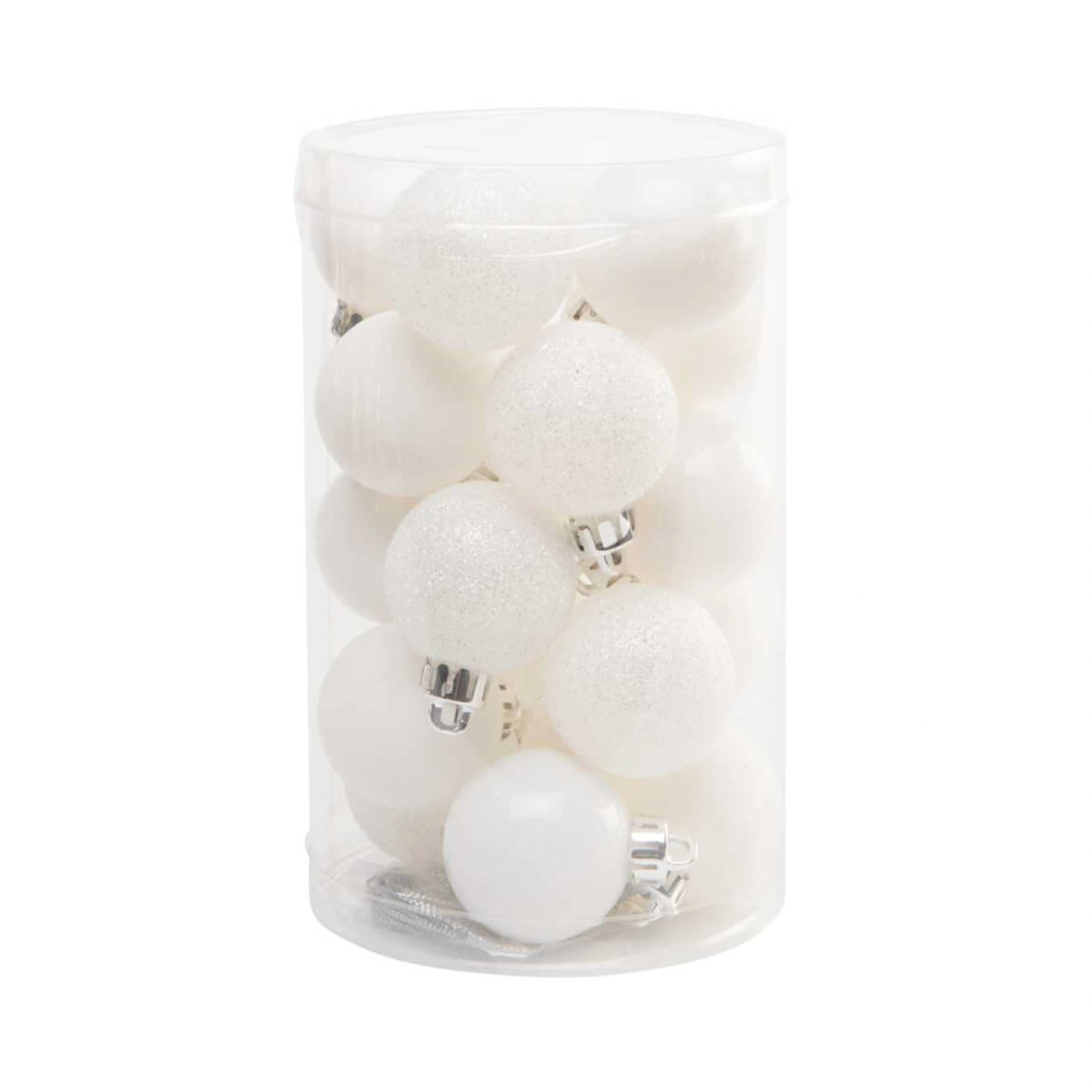 Tento set obsahuje 20 kusov vianočných gúľ v čisto bielej farbe.