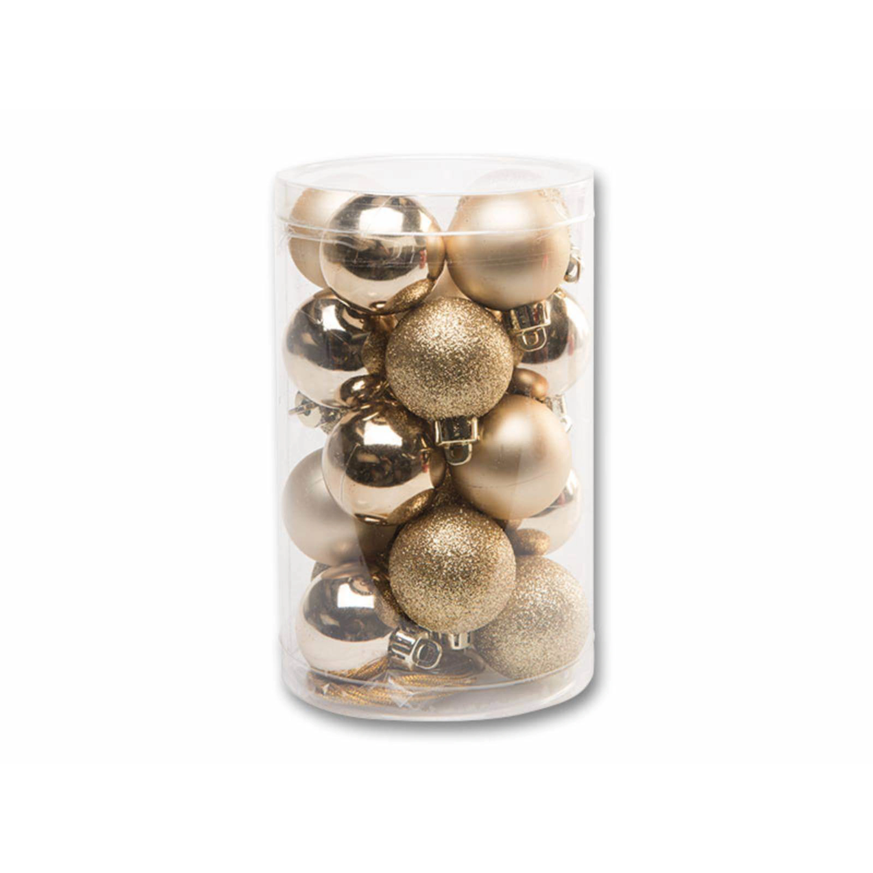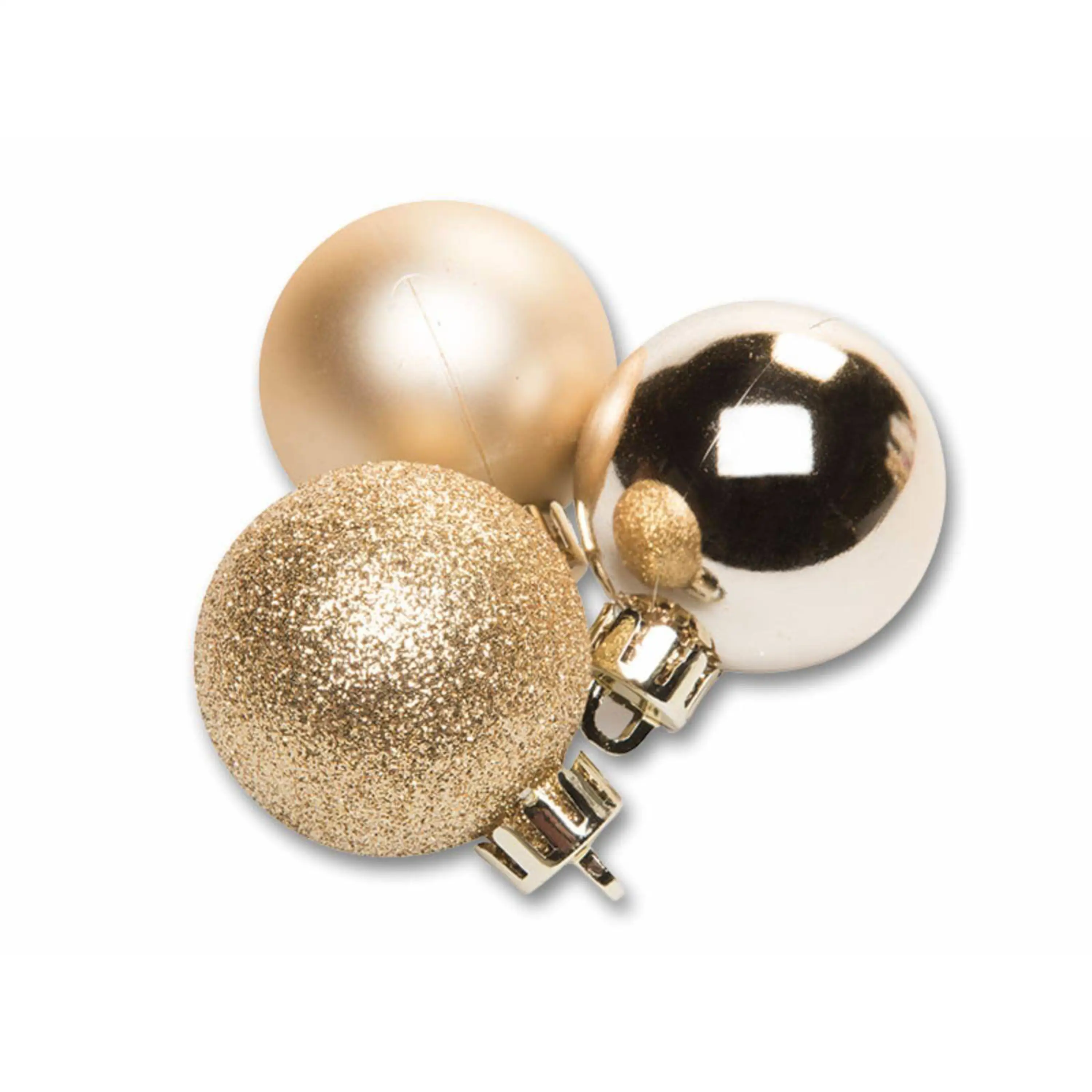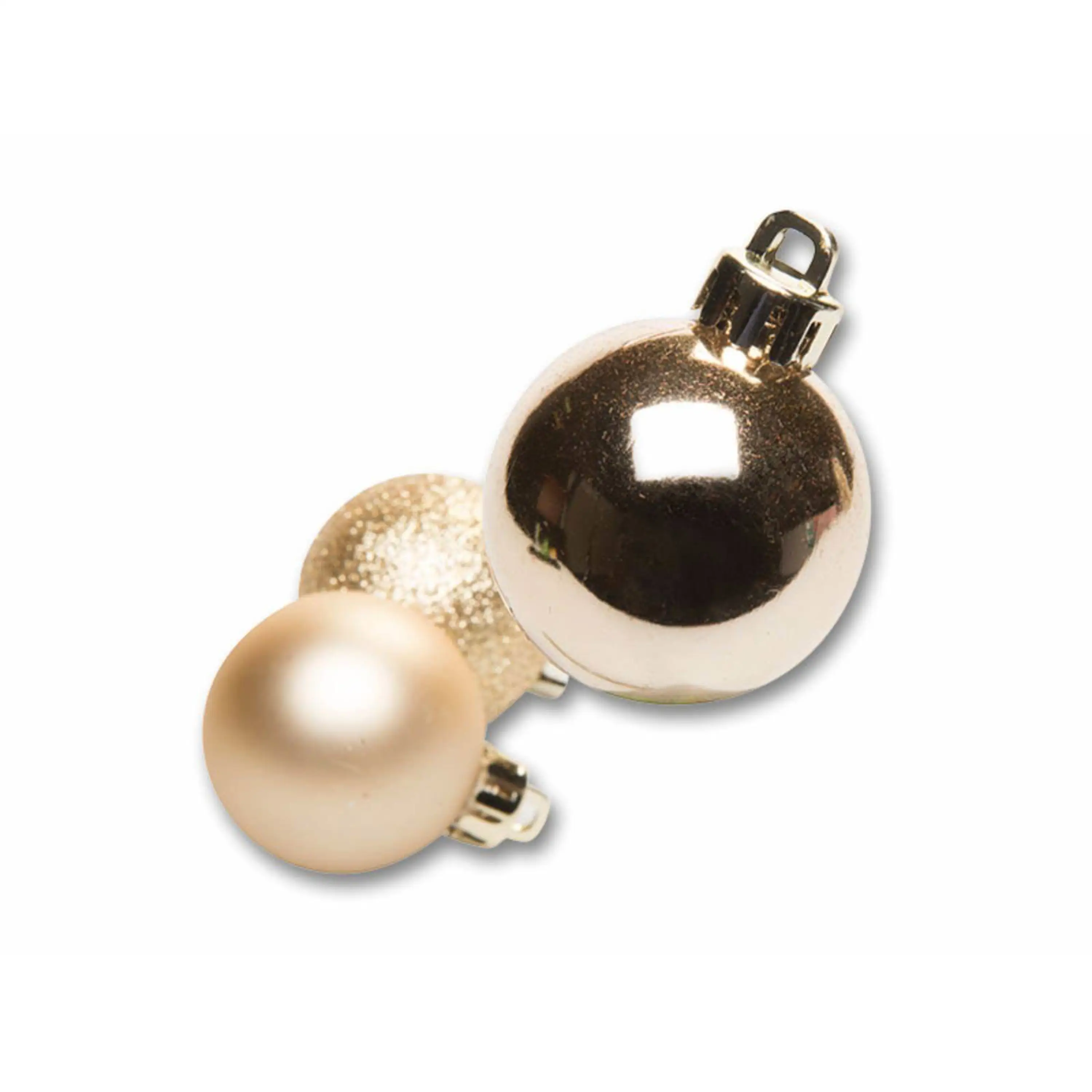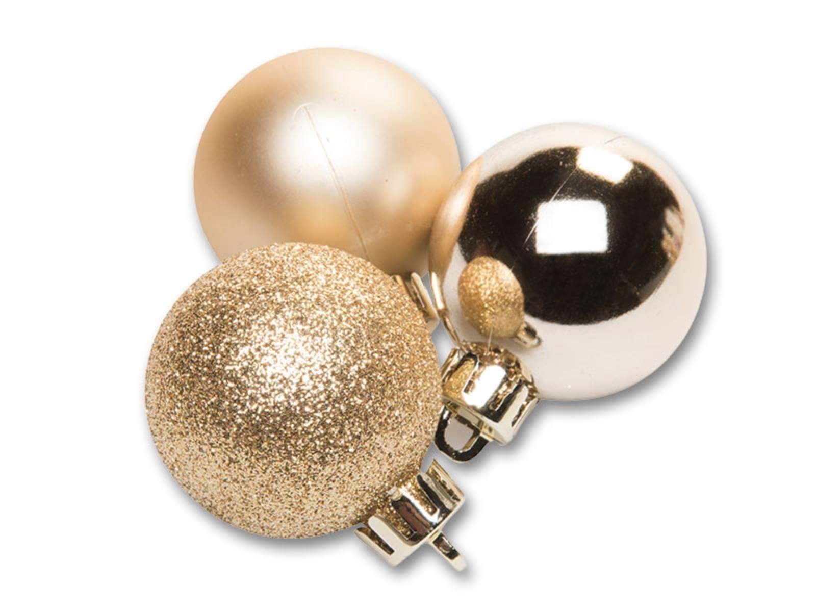 Tento set obsahuje 20 kusov vianočných gúľ v zlatej farbe.