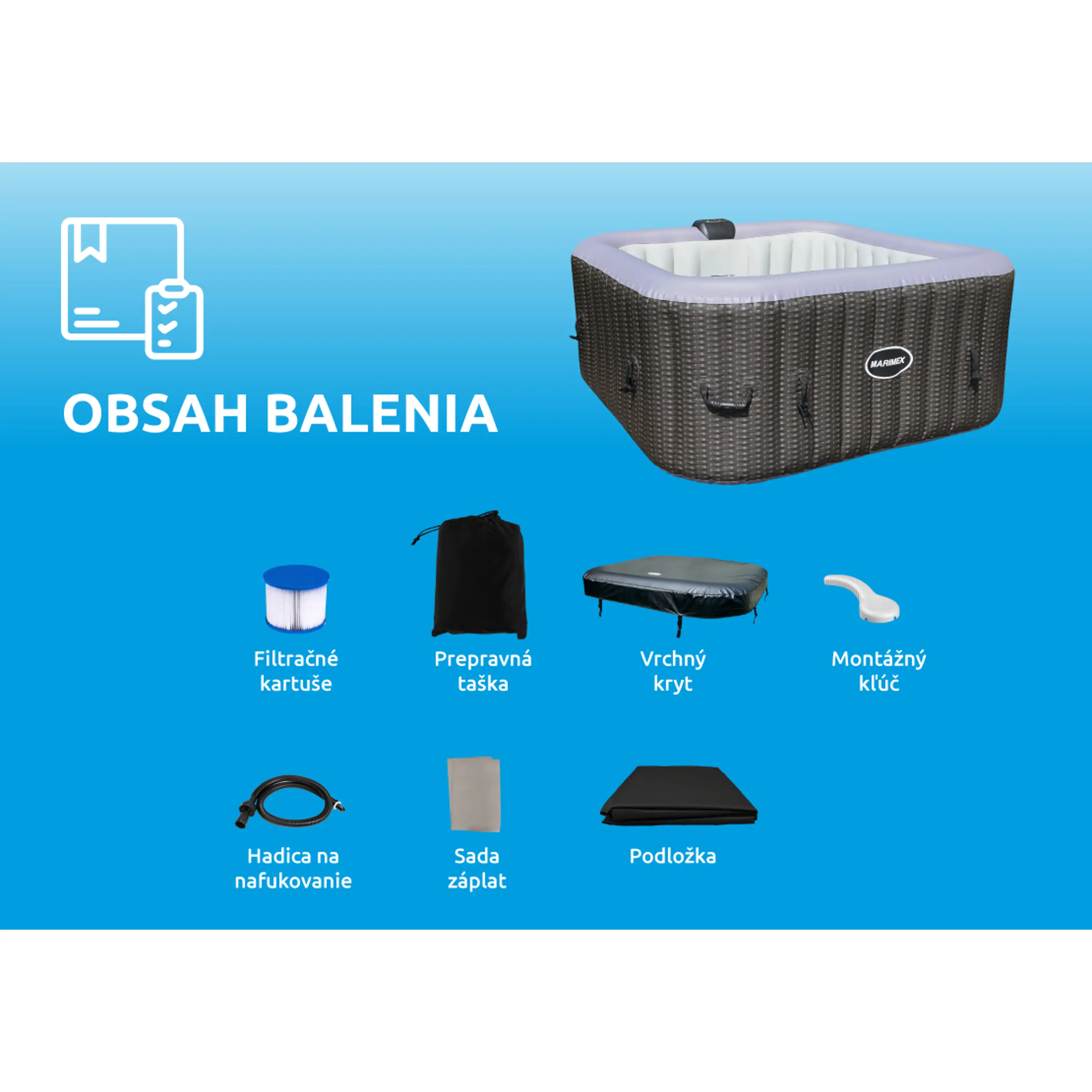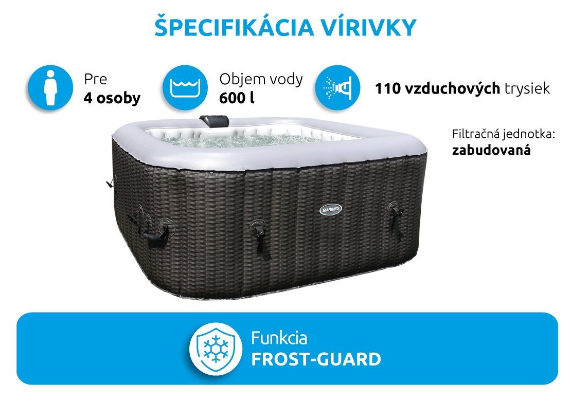 Vzhľadom na to, že motor a vykurovací systém sú zabudované a už pripojené, môže byť vírivka Aquamar nafúknutá a pripravená na naplnenie za menej ako 5 minút. Pokiaľ máte dobrý tlak vody a správne pripojenú hadicu, naplní sa približne za 60-75 minút.