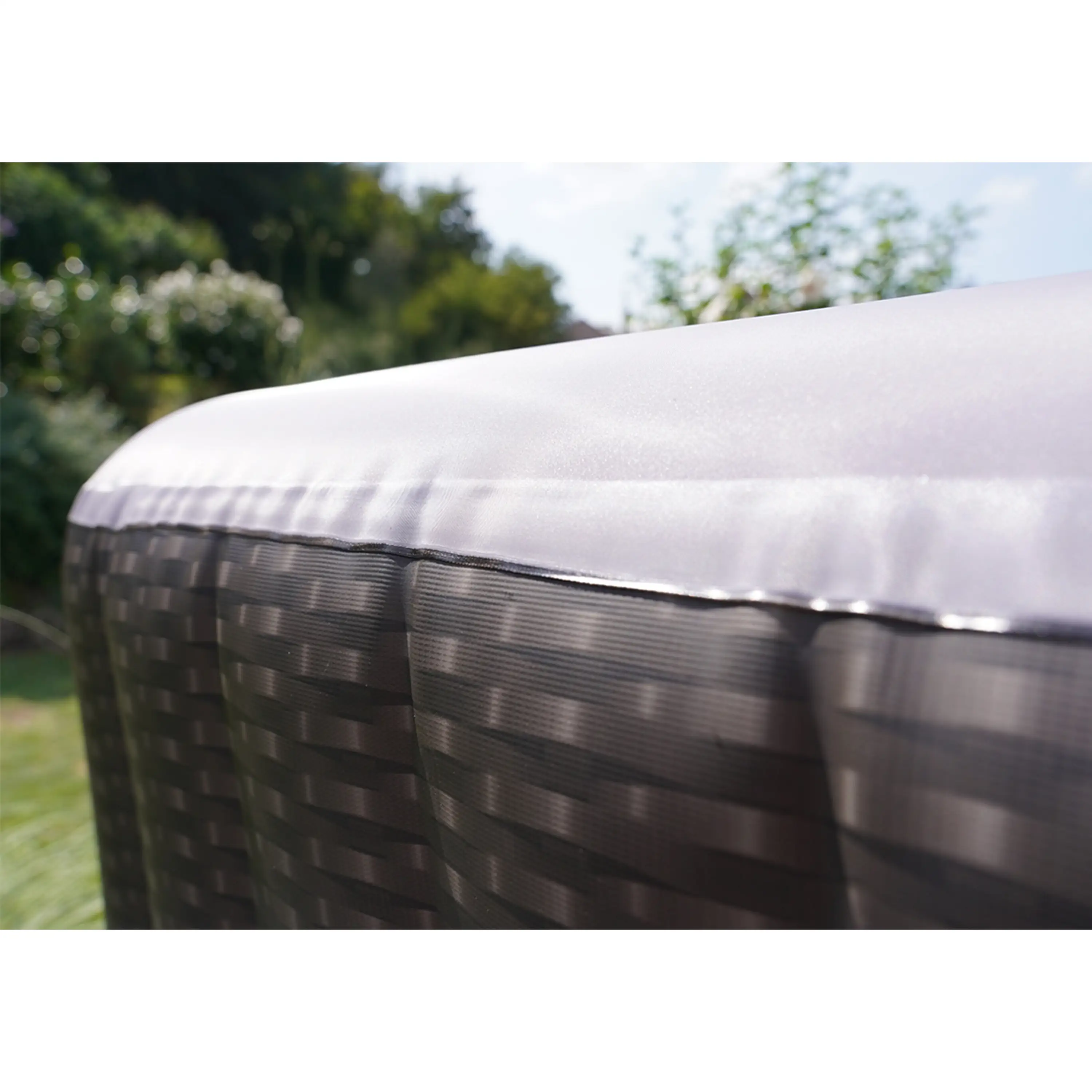 Po správnom nafúknutí by ste mali byť schopní mierne zatlačiť rukou približne 4-5 cm do horného okraja. Správne nafúknutie vírivky zaisťuje optimálnu výkonnosť plášťa a znižuje riziko roztrhnutia a poškodenie švov. Na pohmat odporúčame podľa subjektívneho pocitu skôr mäkšie, pretože ohriatím počas dňa dochádza k rozpínaniu vzduchu vo vnútri a slabším nafúknutím sa tak vyvarujete pretlakovaniu.