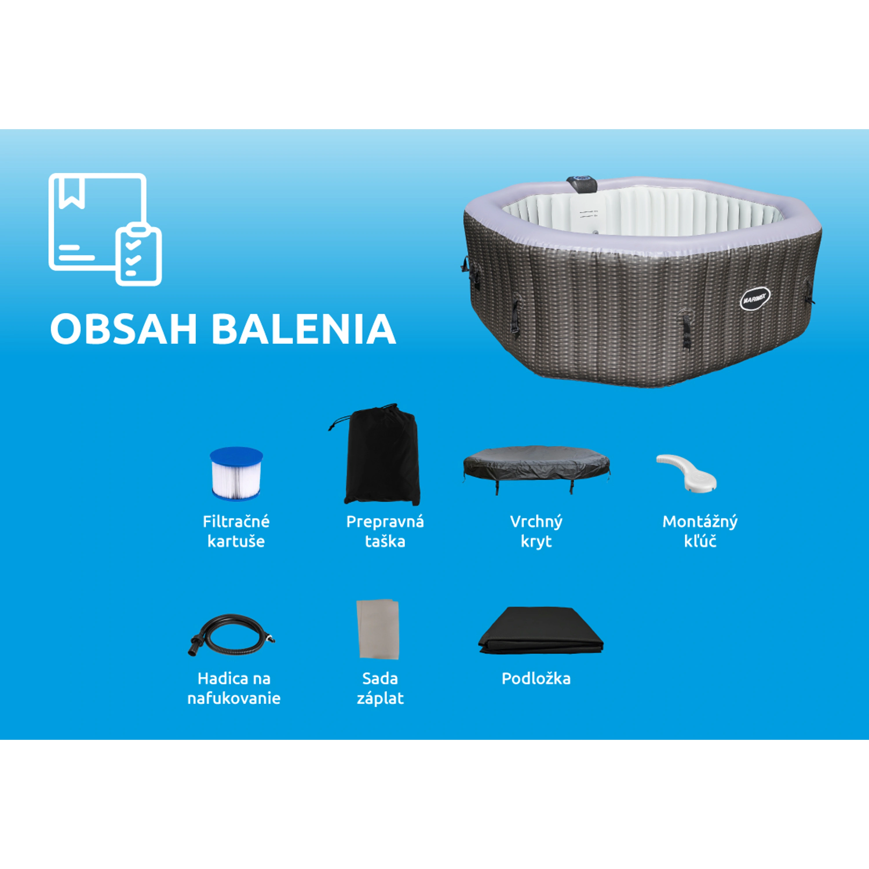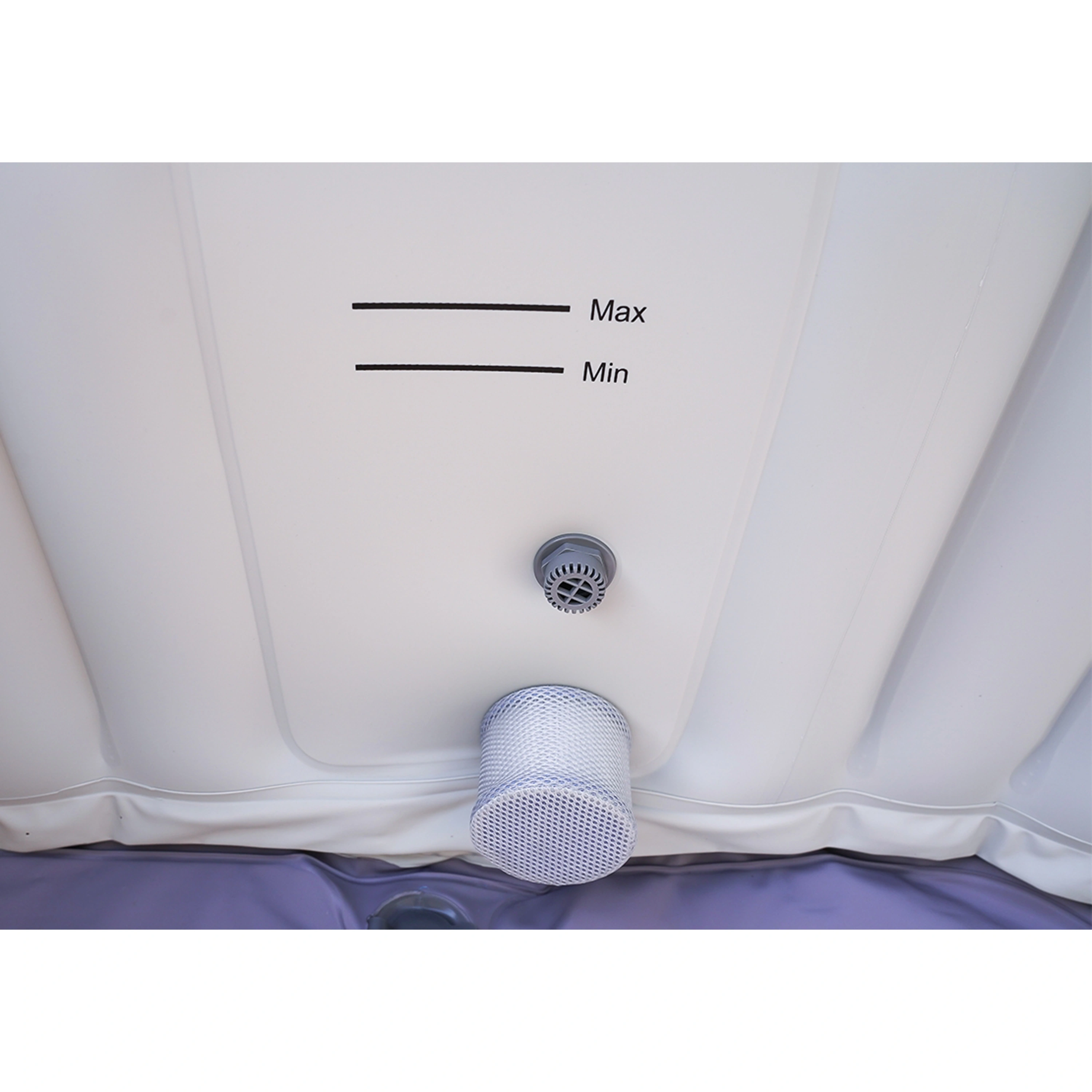 Vzhľadom na to, že motor a vykurovací systém sú zabudované a už pripojené, môže byť vírivka Aquamar nafúknutá a pripravená na naplnenie za menej ako 5 minút. Pokiaľ máte dobrý tlak vody a správne pripojenú hadicu, naplní sa približne za 60-75 minút.