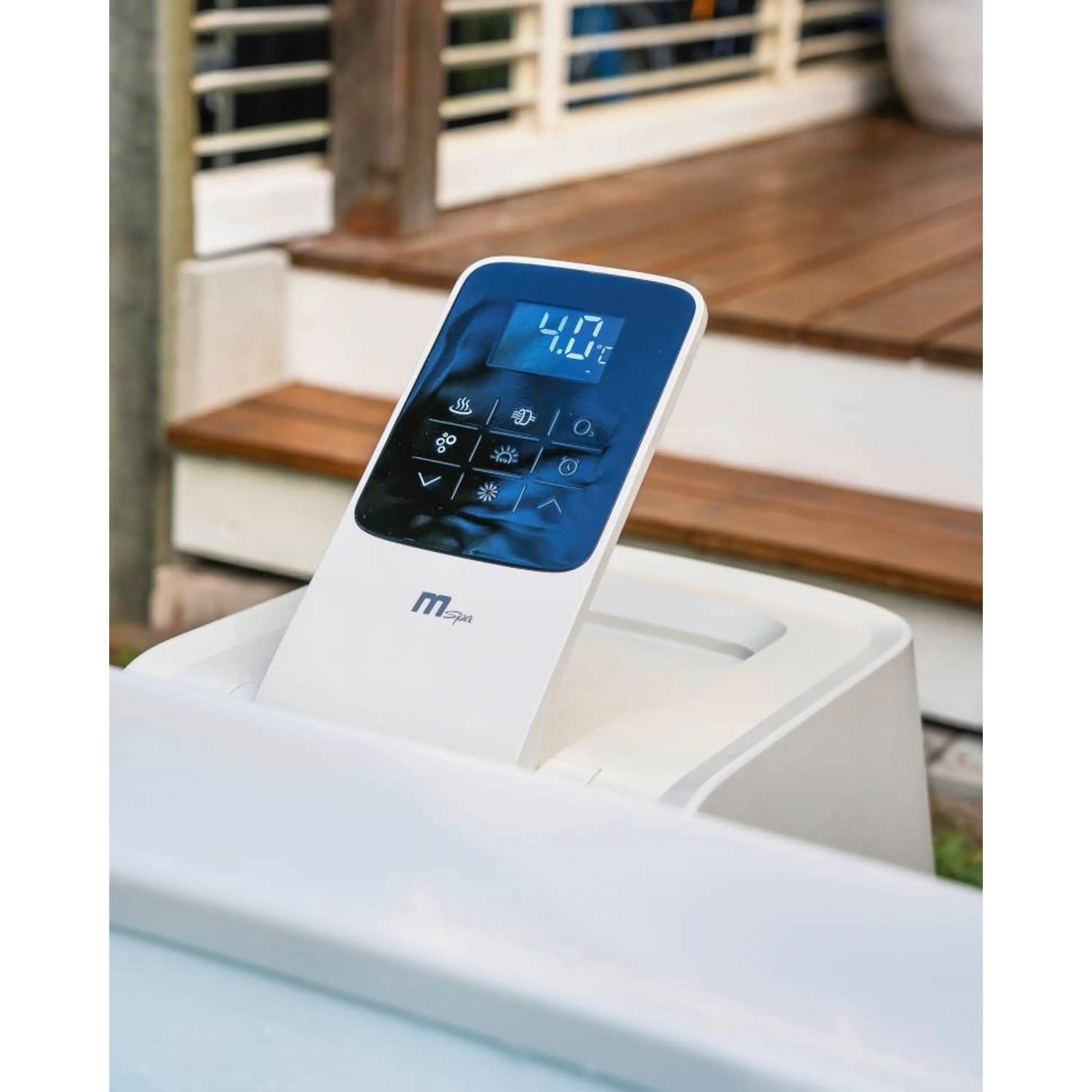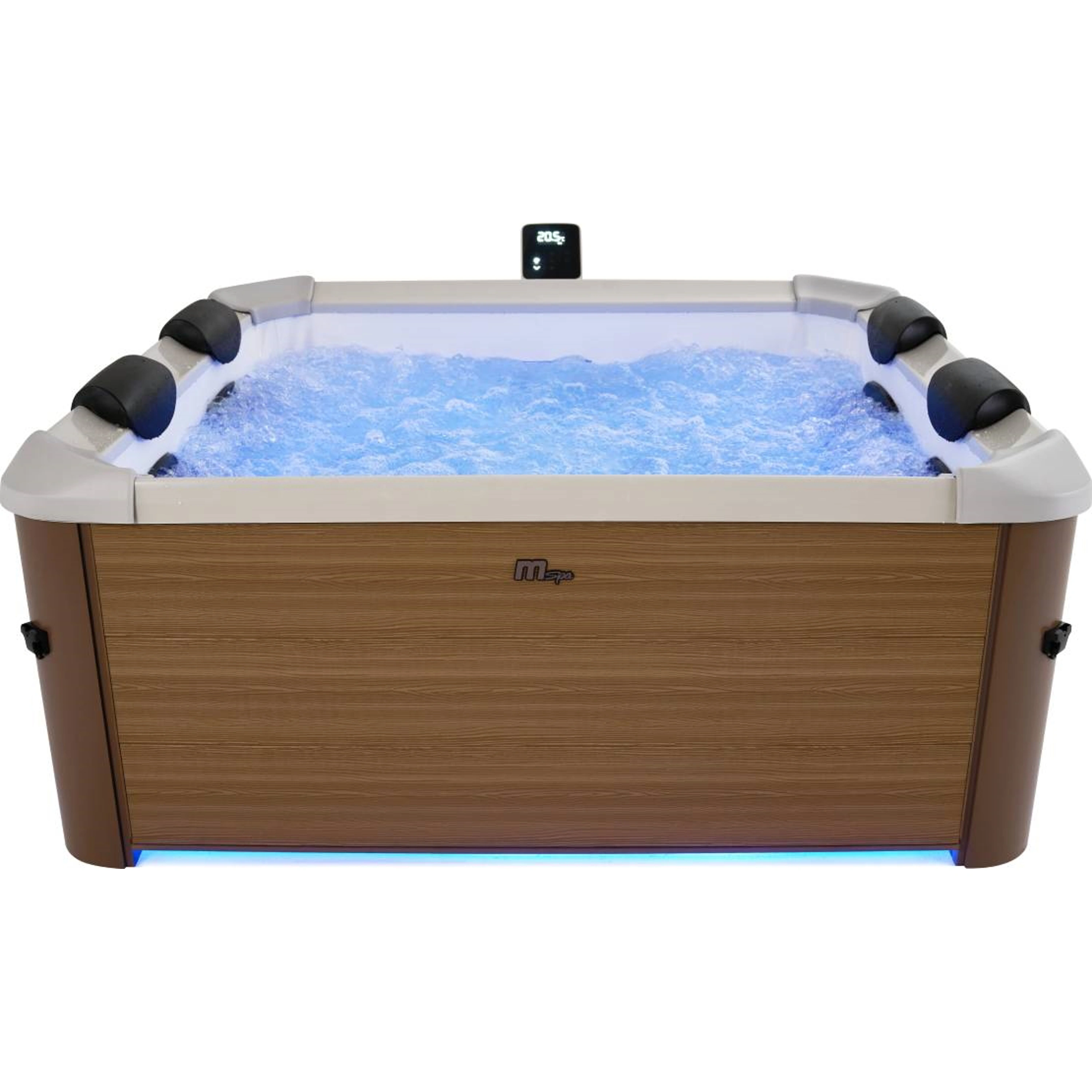 Vnútri ovládacej jednotky je zabudovaná mini sterilizačná komora s UVC LED lampou, ktorá zaisťuje, že každá kvapka vody v Mspa je pod neustálou ochranou - bez ohľadu na to, či sa v nej práve kúpu ľudia alebo nie. Testy ukazujú, že táto lampa dokáže za 4 hodiny zahubiť 52% baktérií. UV LED lampa nemôže poškodiť vaše oči ani pokožku, pretože je kompletne uzavretá vo vnútri čerpadla. Na rozdiel od UVA alebo UVB žiarenia UVC nemá vplyv na životnosť. Vlnová dĺžka UVC žiarenia je starostlivo nastavená tak, aby neovplyvnila životnosť ostatných častí vane. Spotreba tohto UVC systému je veľmi nízka.