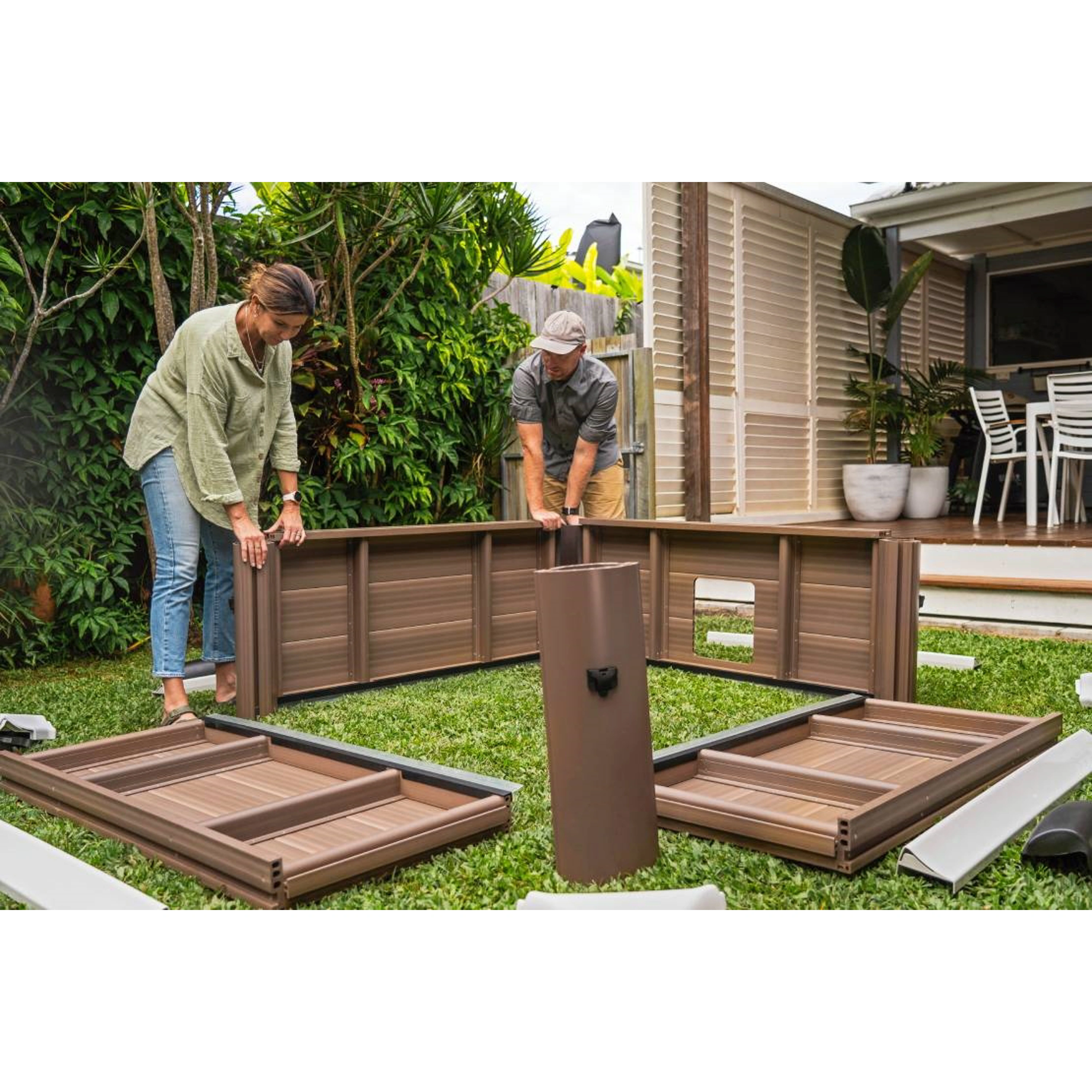- 4x bočný panel + 4x horná lišta + 4x spodná lišta + 4x rohová stojna + 4x rohová lišta + 4x kryt rohovej lišty + 4x spoj bočného panelu + vnútorná Rhinotech prémiová PVC vložka