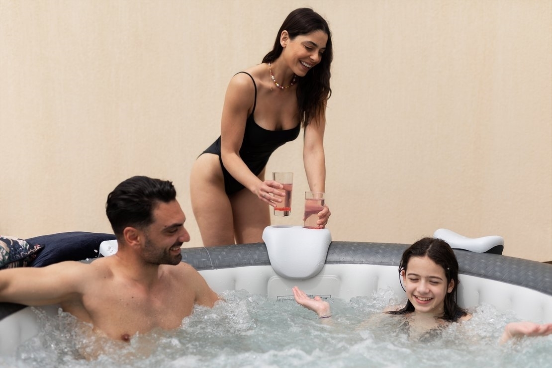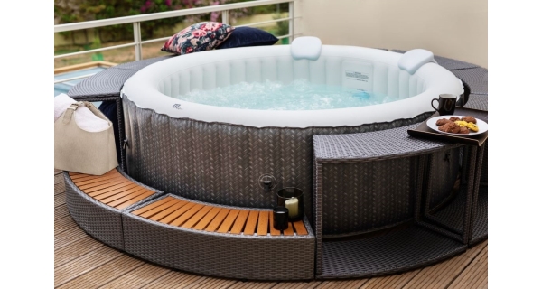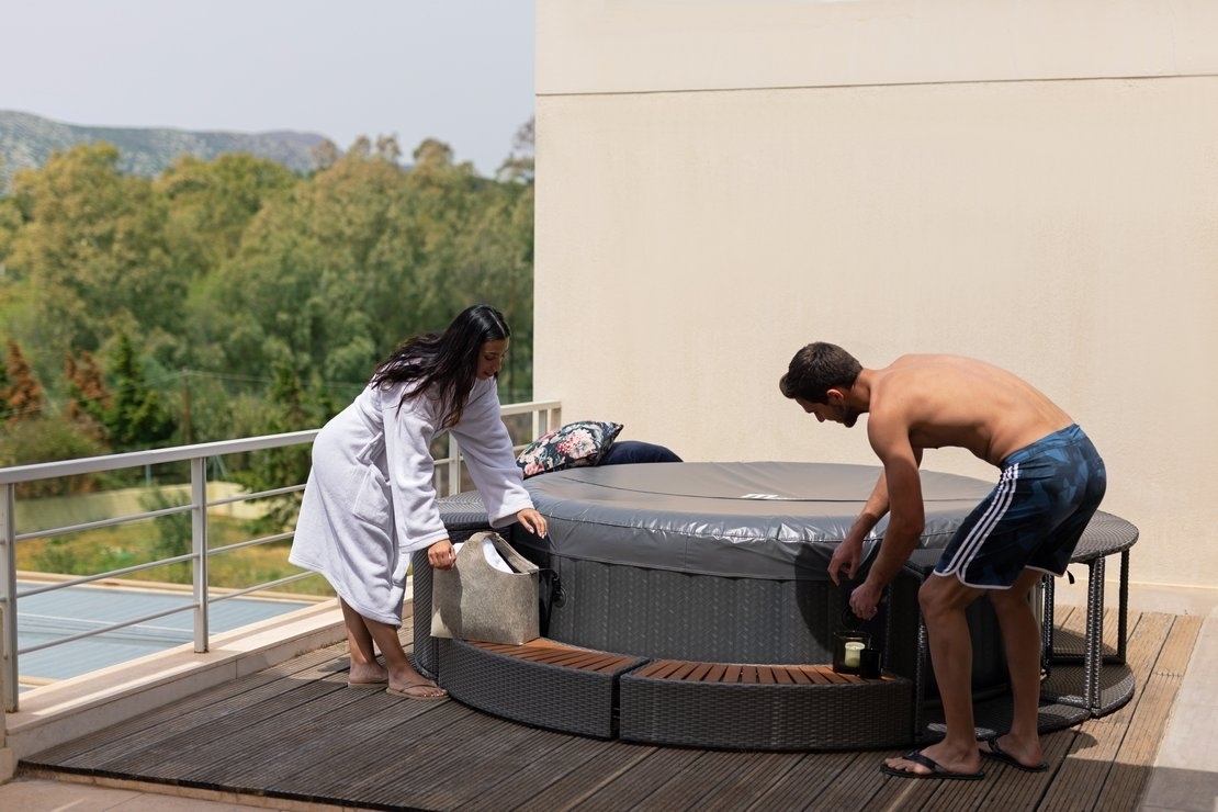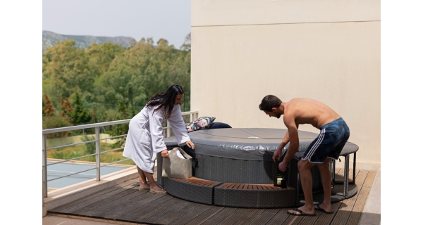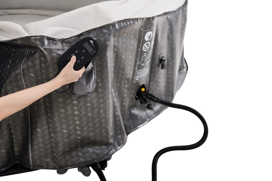 Stačí nájsť rovný terén, nafúknuť vírivku elektrickou pumpou a naplniť ju vodou. Vírivku zostavíte za desať minút.