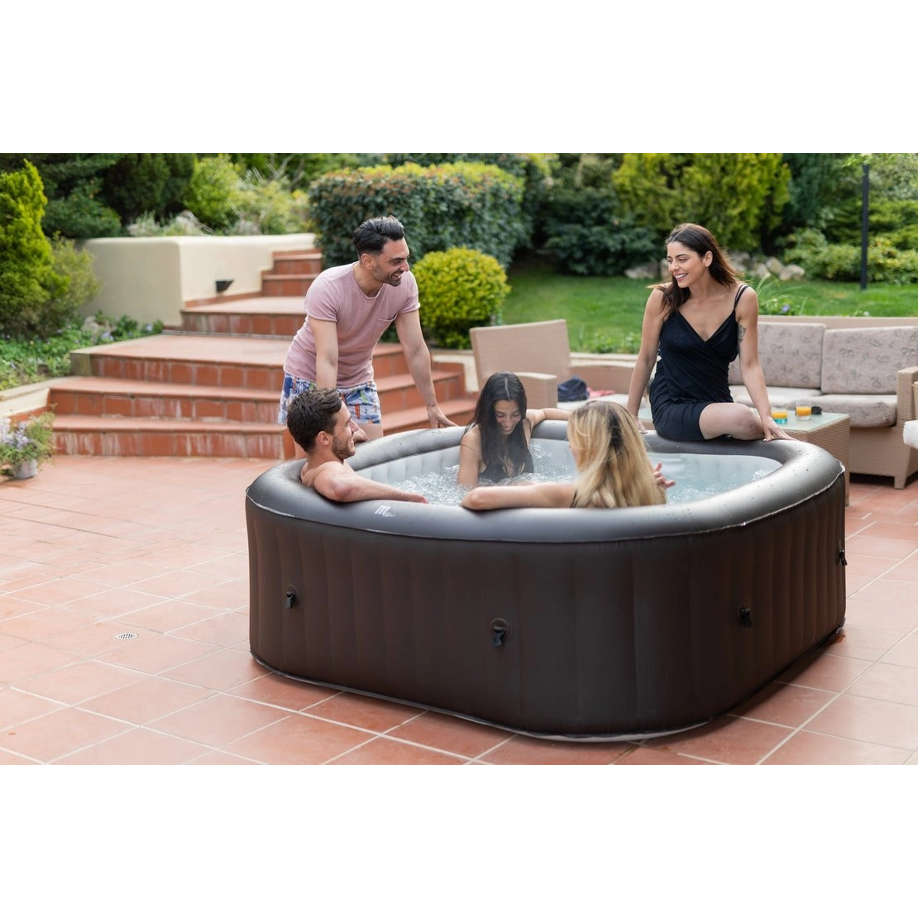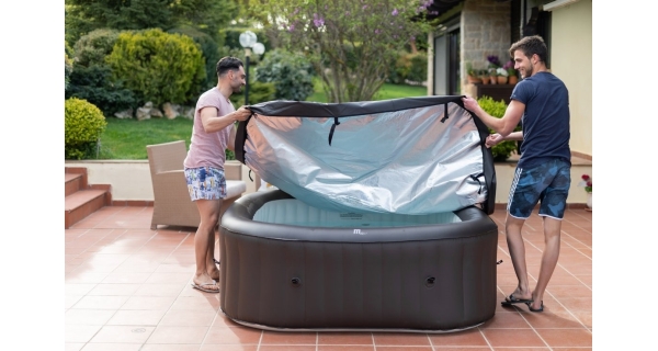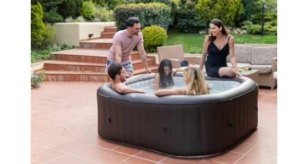 Stačí nájsť rovný terén, nafúknuť vírivku elektrickou pumpou a naplniť ju vodou. Vírivku zostavíte za desať minút.