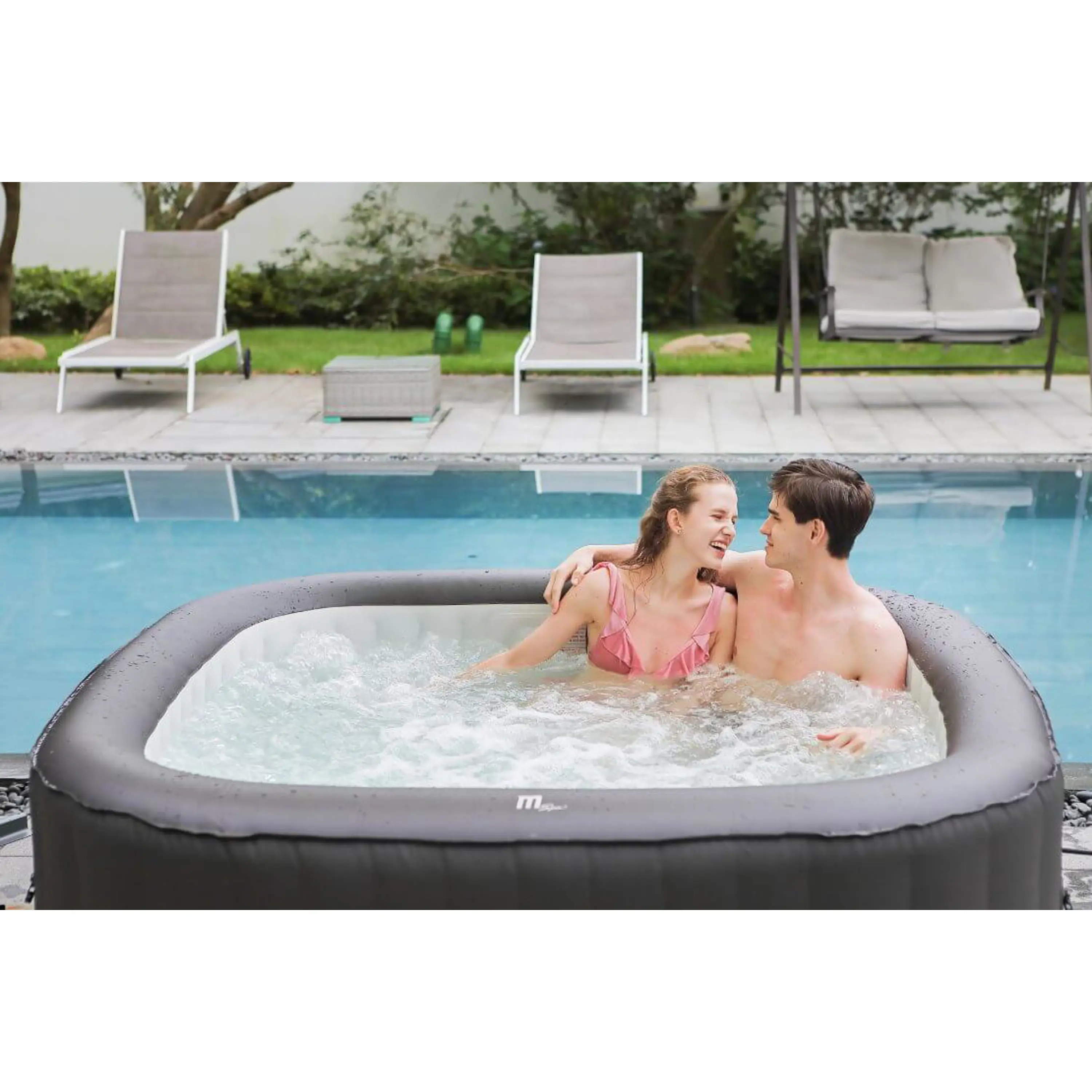 Kombinácia klasických nafukovacích bazénov a luxusných víriviek. Podobne ako vstavané vírivky má výkonné trysky, ale kúpna cena je nižšia.