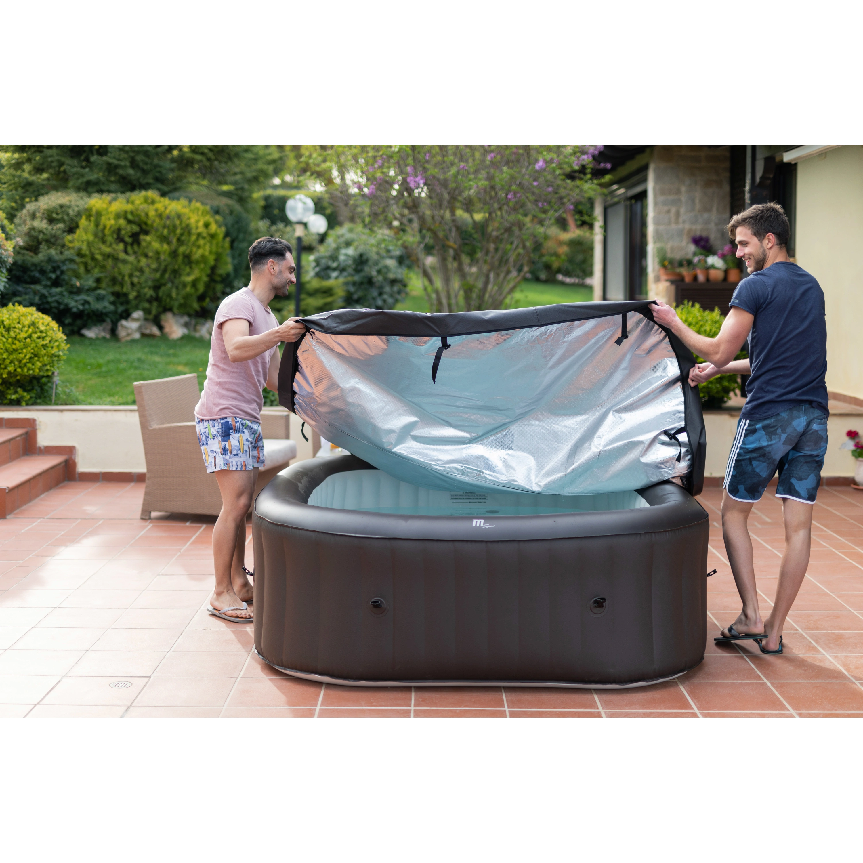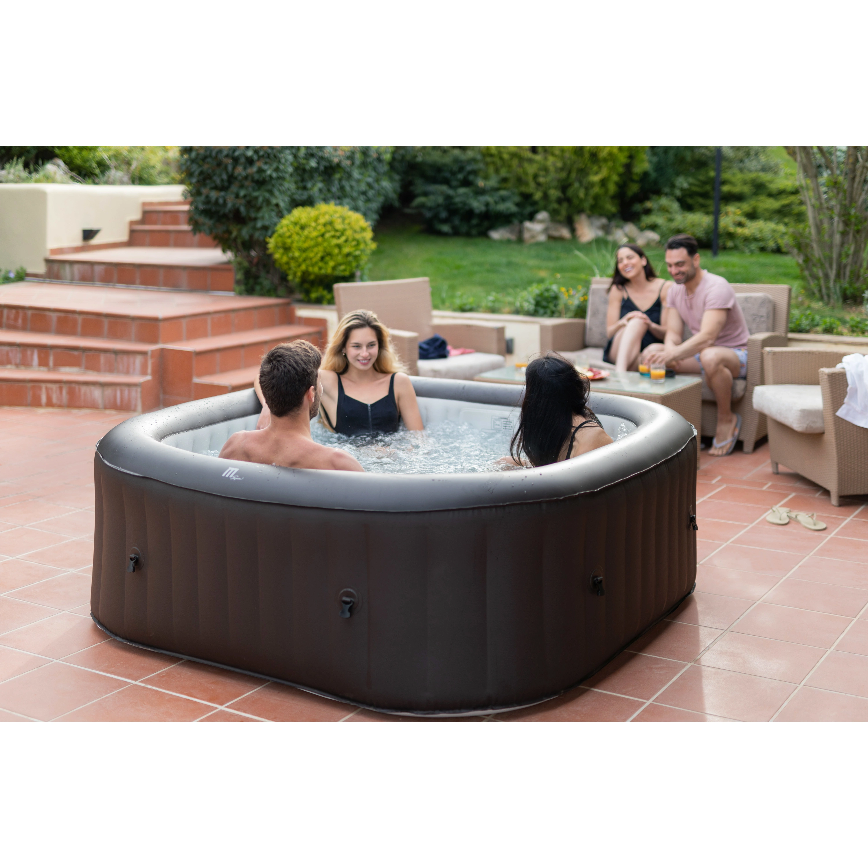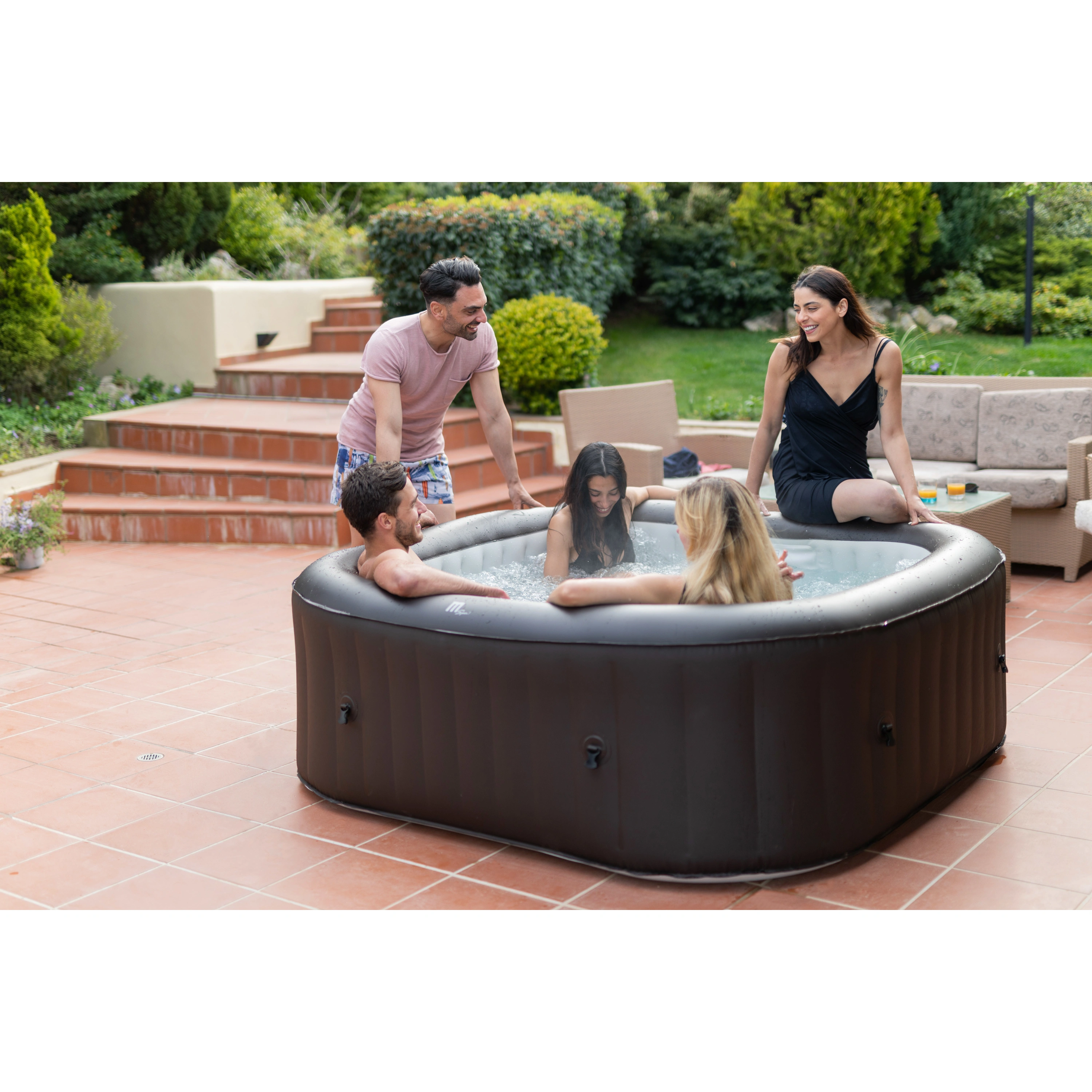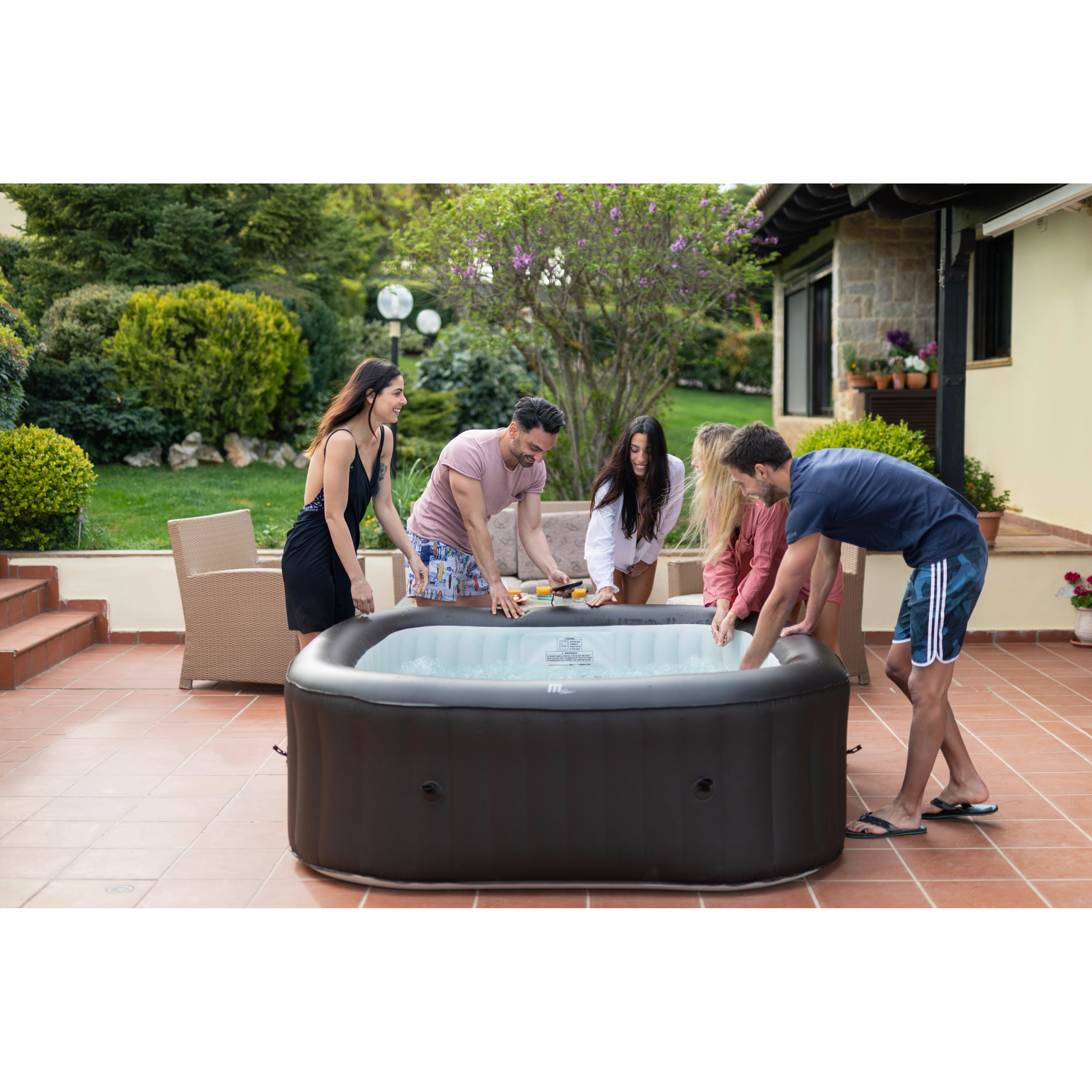 Stačí nájsť rovný terén, nafúknuť vírivku elektrickou pumpou a naplniť ju vodou. Vírivku zostavíte za desať minút.