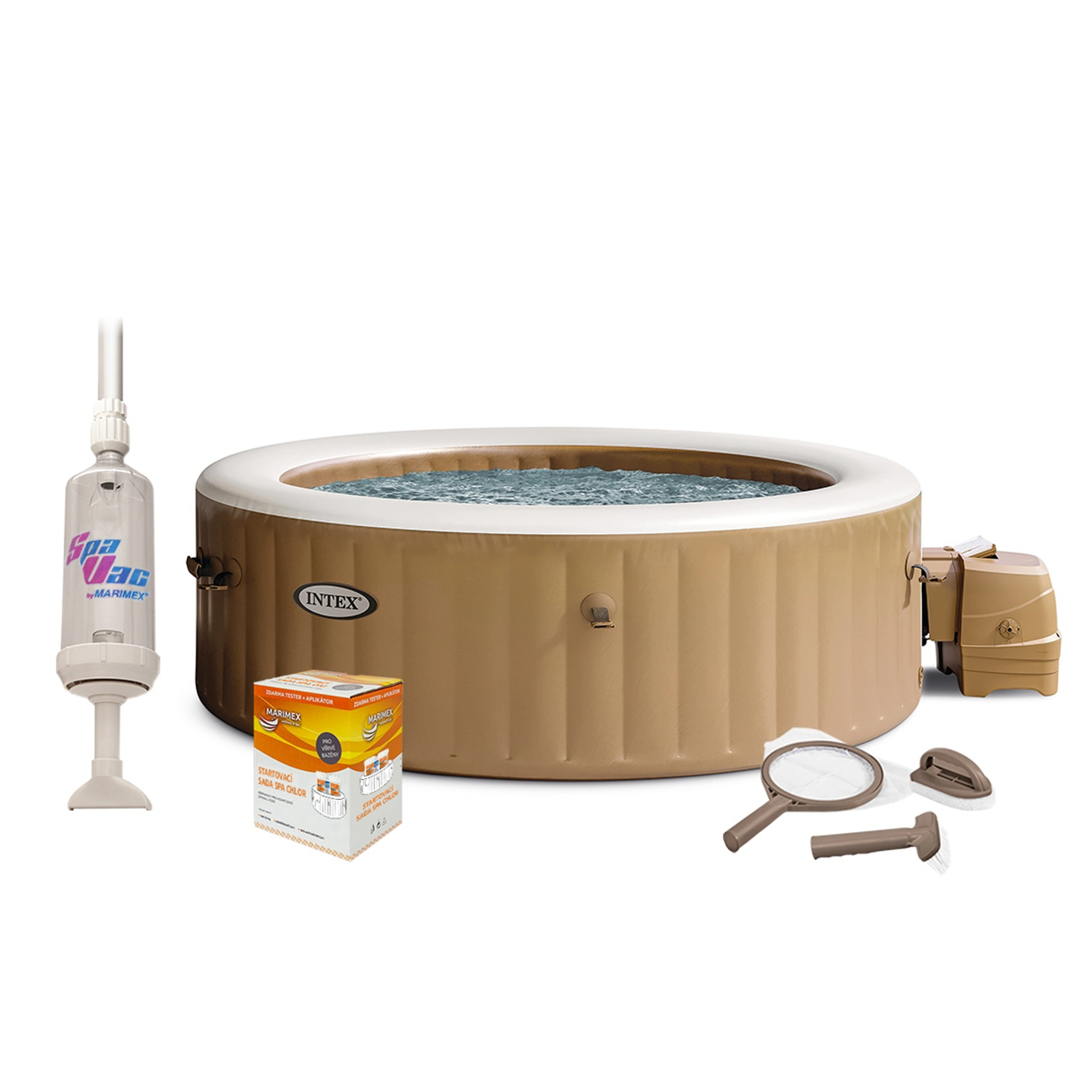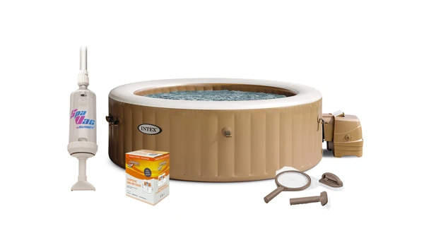 Vírivá vaňa PureSpa poskytuje dokonalú relaxáciu jediným stlačením tlačidla. Je určená až pre štyri osoby. Intuitívny ovládací panel aktivuje 120 vysokoúčinných bublinkových trysiek na masáž každého svalu. Integrovaný vykurovací systém umožňuje nastaviť teplotu vody podľa vašej nálady. PureSpa vyžaduje jednoduchú a rýchlu údržbu. PureSpa umožňuje dokonalú relaxáciu v každom ročnom období. Vaňa je vyrobená z kvalitného laminovaného PVC s klasickým krémovým vzorom. Jej dizajn ocenia všetci obdivovatelia dokonalých kriviek. Relaxačnú bublinkovú terapiu s nezávislým vyhrievaním ocení rodina aj priatelia.