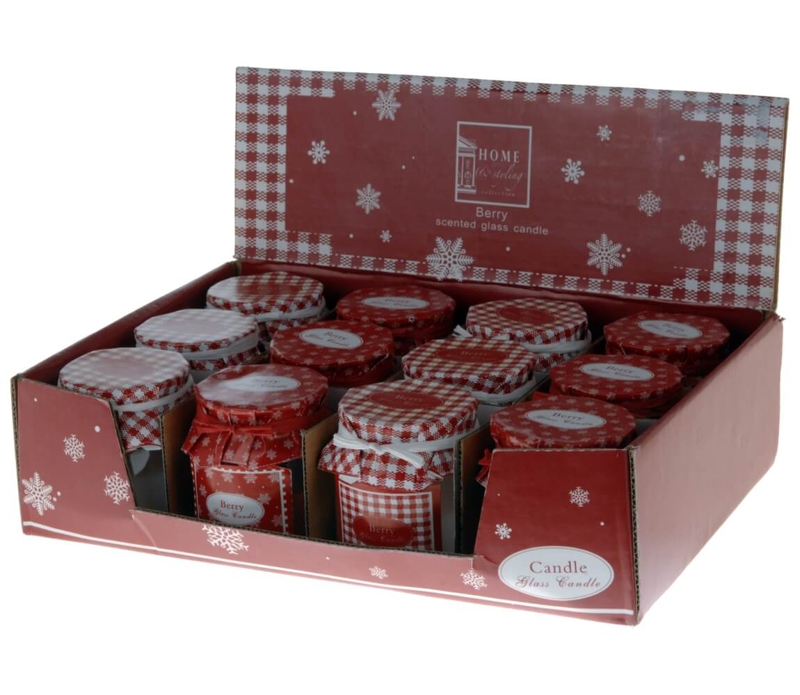 Vonná sviečka v sklenenom obale zabezpečená viečkom.