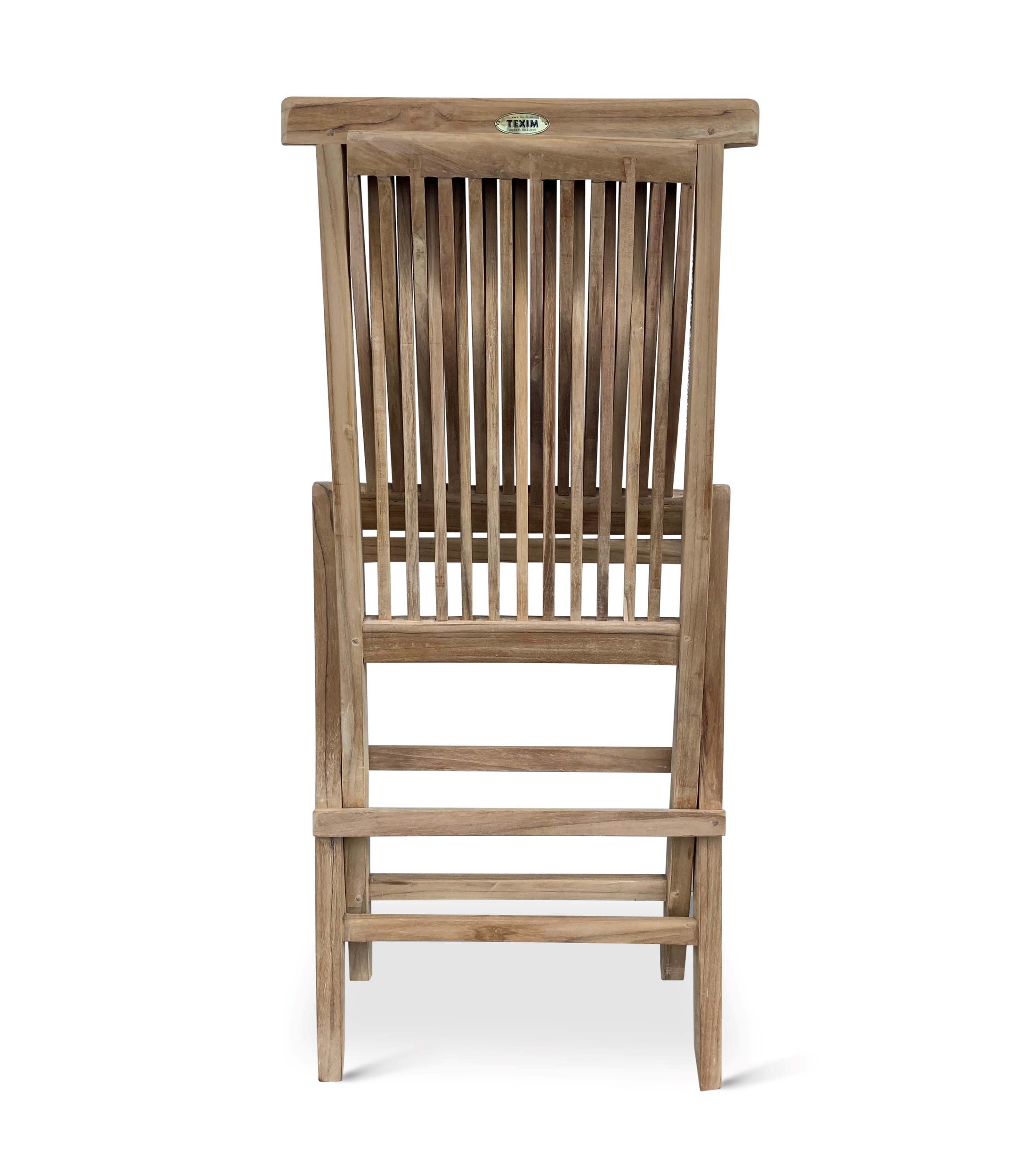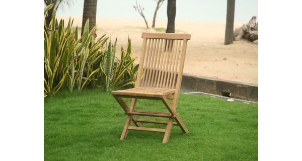 Drevená skladacia stolička Clasic z kvalitného exotického dreva teak. Stolička Clasic ponúka pohodlné sedenie a rýchle zloženie. Ušetríte tak miesto pri uložení stoličiek. Nenáročná údržba - stačí pravidelne ošetrovať teakovým olejom na zvýraznenie kresby dreva a ochranu proti poveternostným vplyvom.