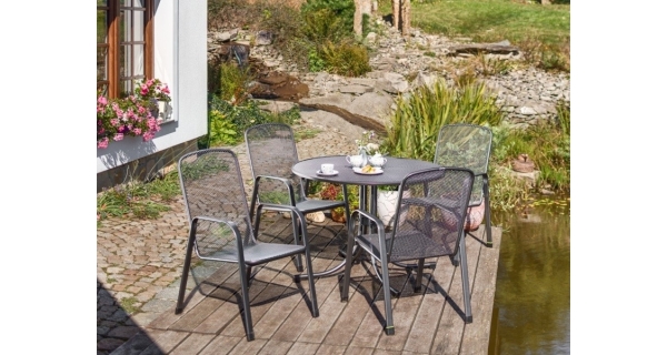 Tahokov je získavaný ťahaním kovového plátu, do ktorého nože súčasne vyrezávajú dekor. Ide o veľmi odolný materiál, ktorý je navyše ošetrený špeciálnou povrchovou úpravou Elotherm na vonkajšie použitie. Tá chráni nábytok pred koróziou i poveternostnými vplyvmi a výrazne znižuje riziko vzniku škrabancov. Povrch nábytku sa tiež vďaka nemu ani v horúcich letných dňoch nerozpaľuje.