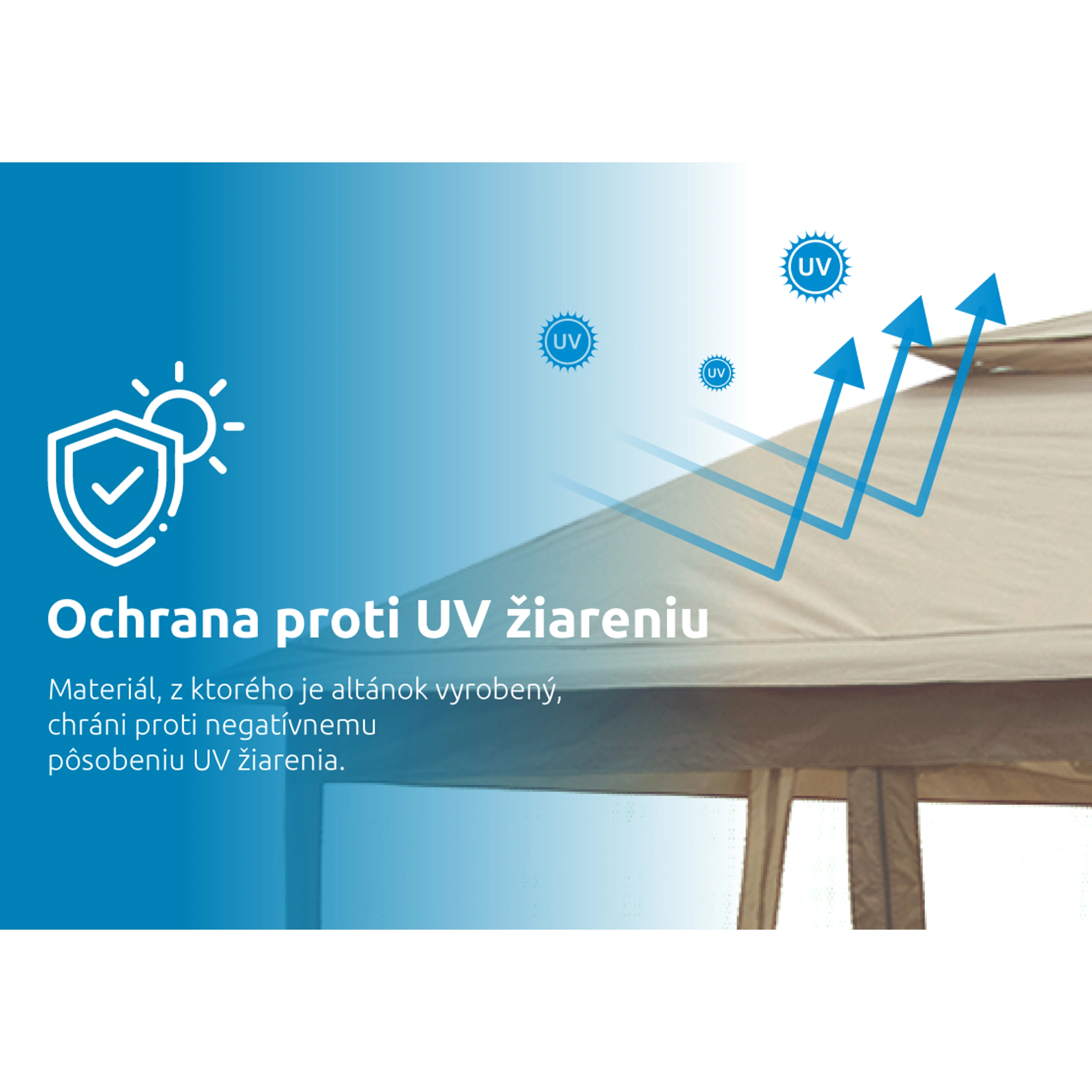 Ochrana proti UV žiareniuMateriál, z ktorého je altánok vyrobený, chráni proti negatívnemu pôsobeniu UV žiarenia. |