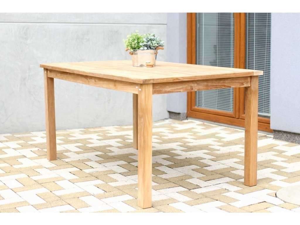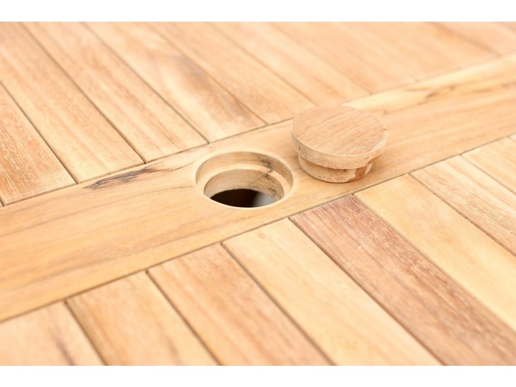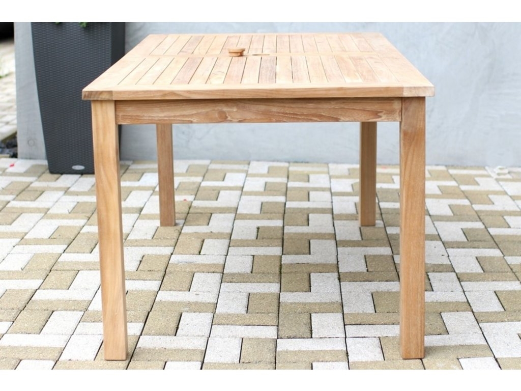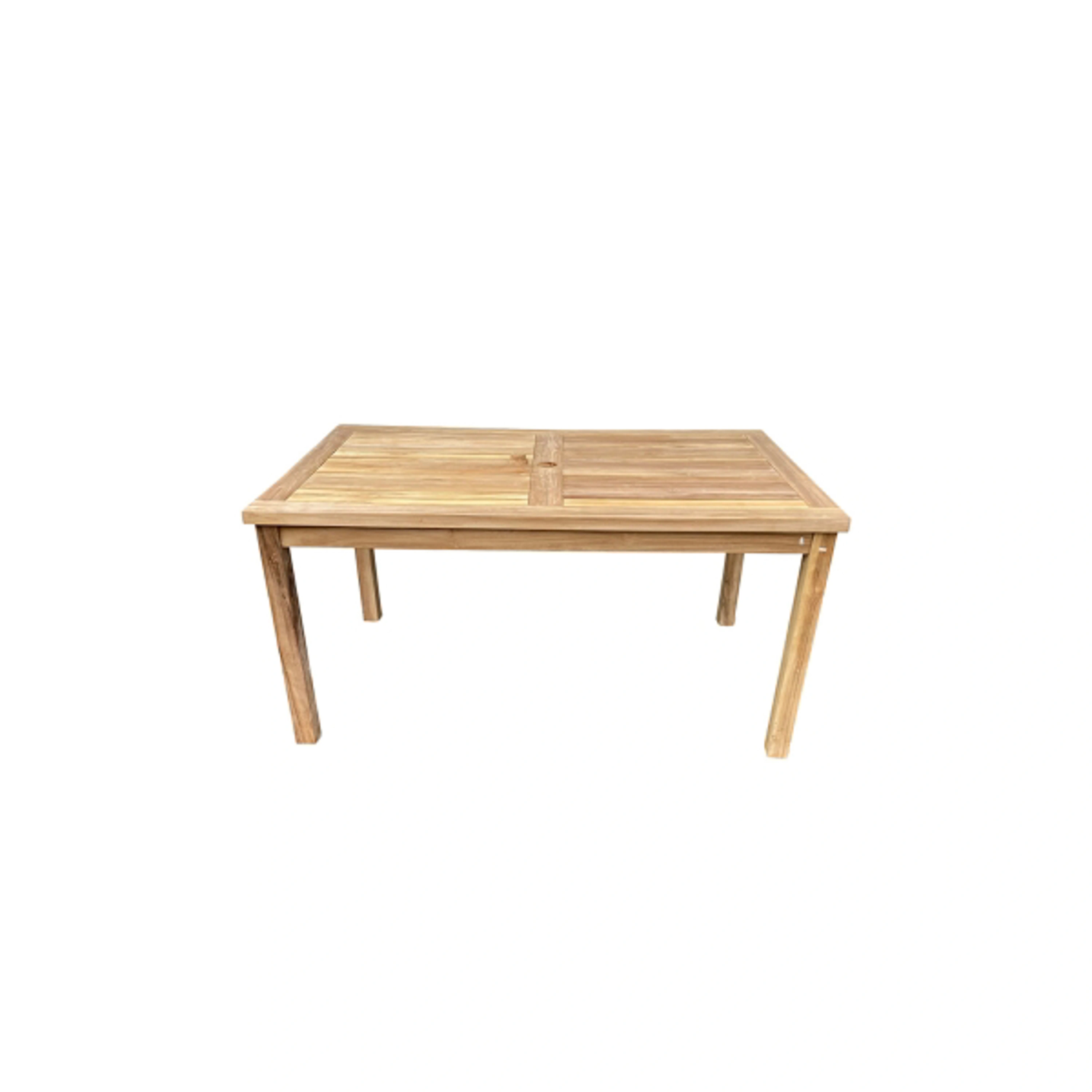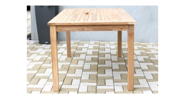 Záhradný stôl Garden. Kvalita exotickej dreviny teak je overená. Pokiaľ teda chcete luxusný záhradný nábytok, potom je teak to správne riešenie. Vysoká odolnosť voči poveternostným vplyvom, vysoká tvrdosť dreva a nádherná kresba. Z radu Garden je aj obdĺžnikový stôl Garden I, ktorý je svojim rozmerom 150 x 90 cm optimálny pre 4-6 osôb. S otvorom na slnečník uprostred dosky stola.
