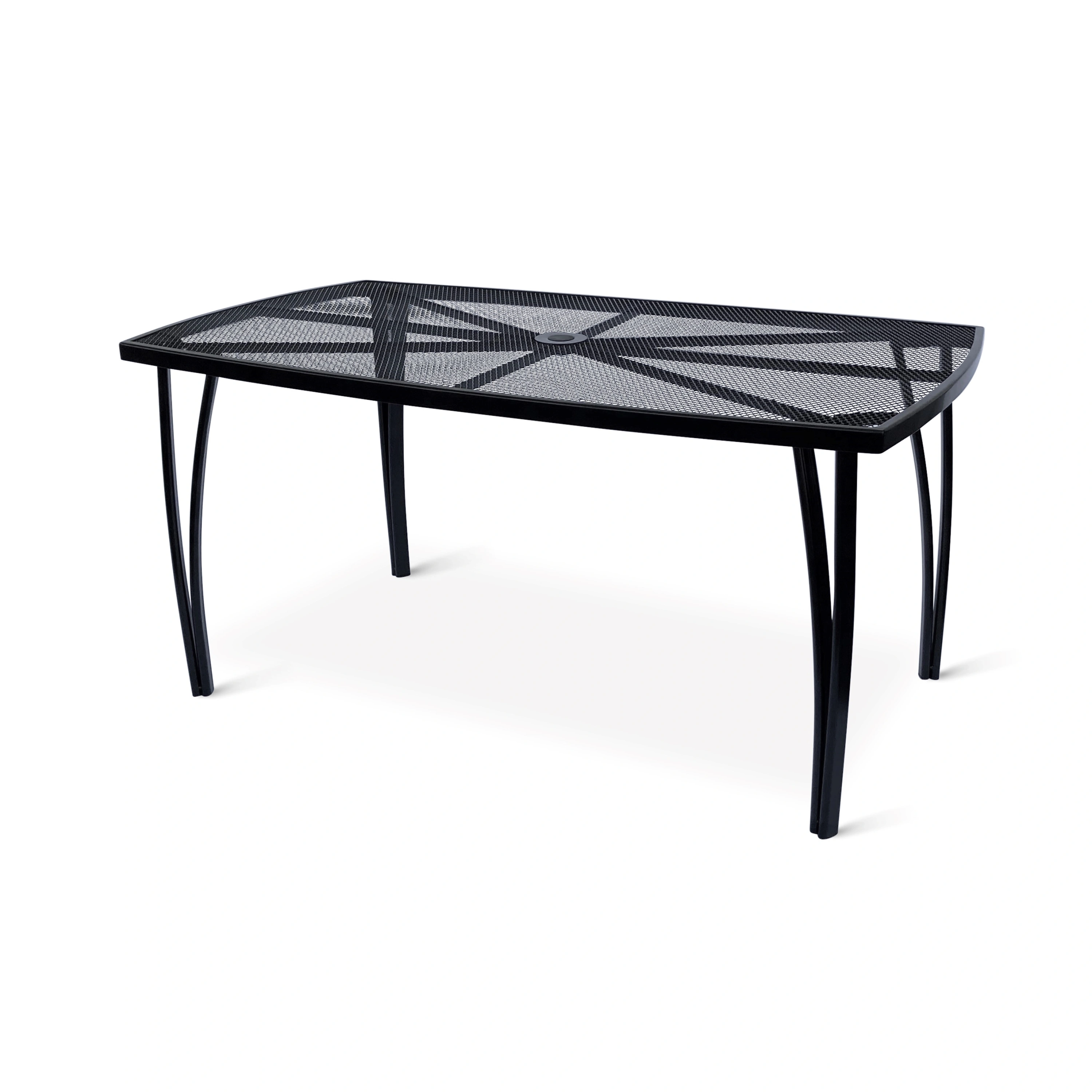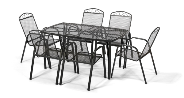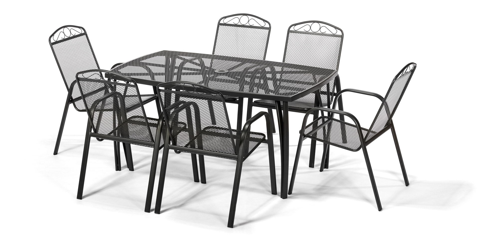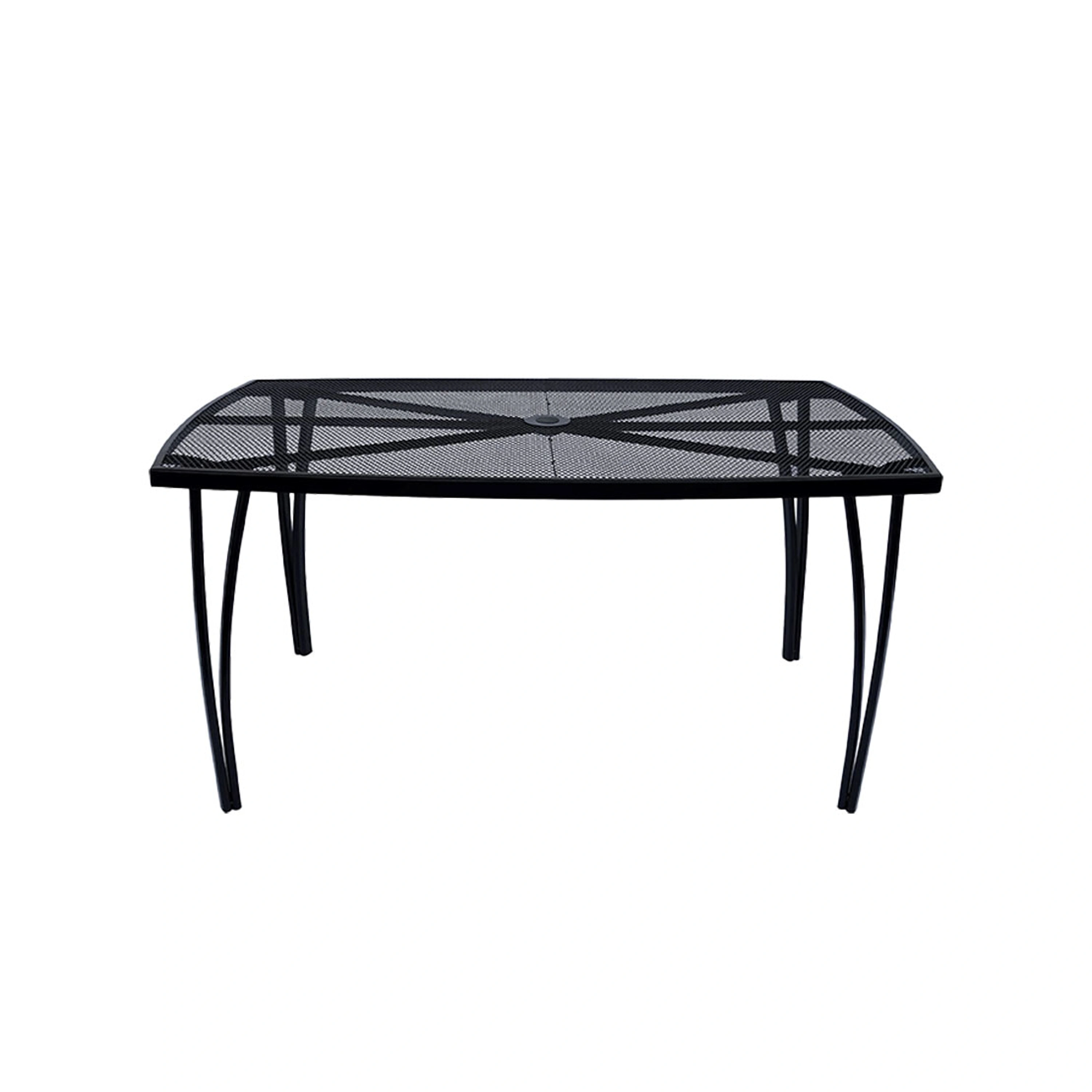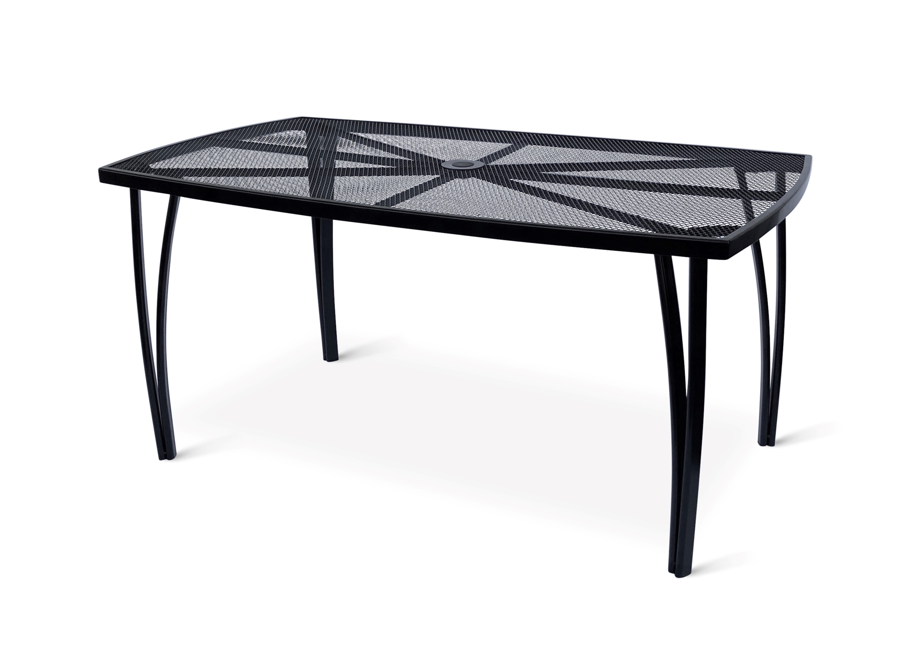 Obdĺžnikový stôl Lana steel z kovu disponuje doskou s drôteným výpletom s otvorom pre slnečník uprostred. Vďaka tomu je celá konštrukcia ľahká a stôl tak ľahko prenesiete. Kovová konštrukcia bola pre dlhšiu životnosť ošetrená proti hrdzi práškovým lakom. Jednoduchá údržba stola, vyrobený z umývateľných materiálov. Odoláva poveternostným vplyvom.
