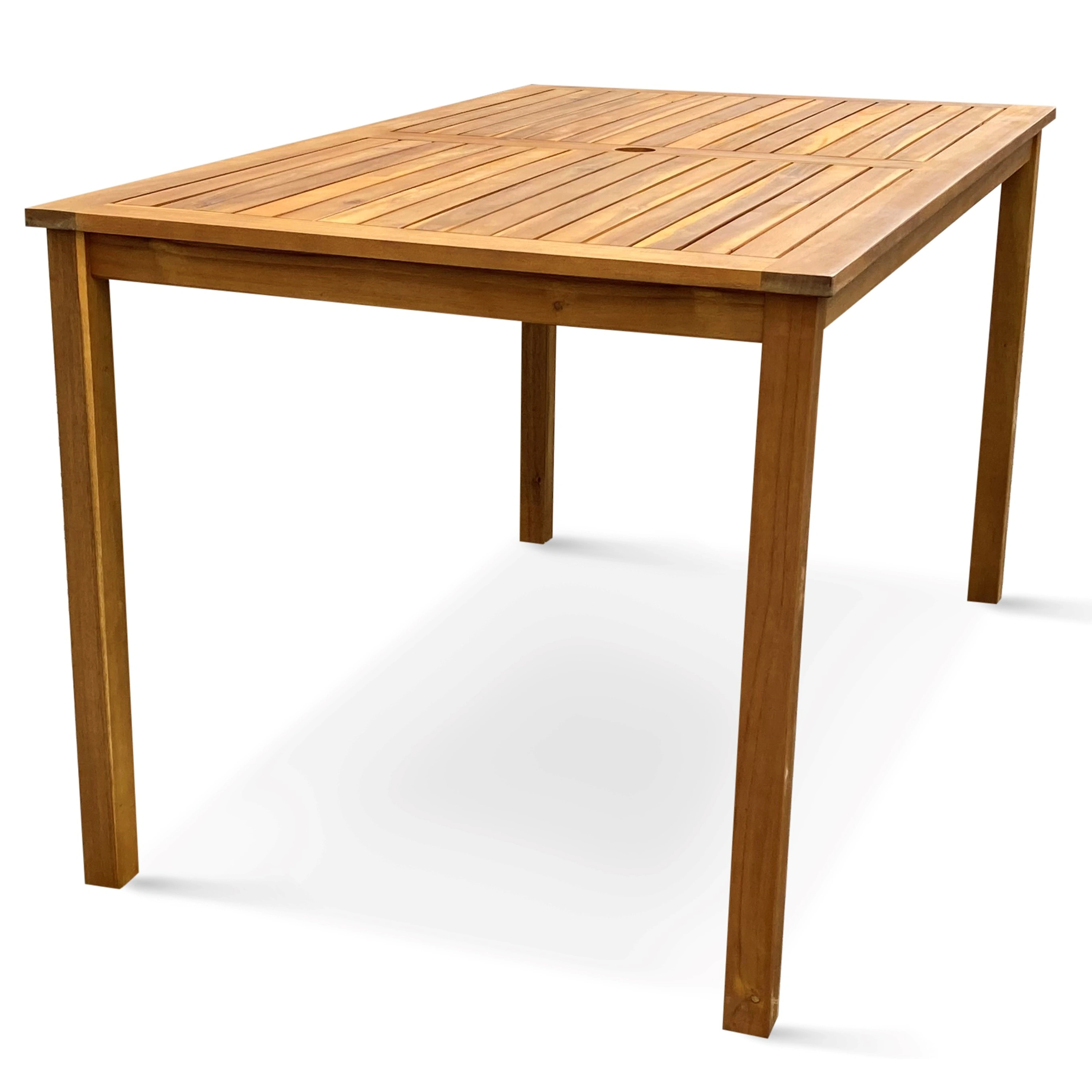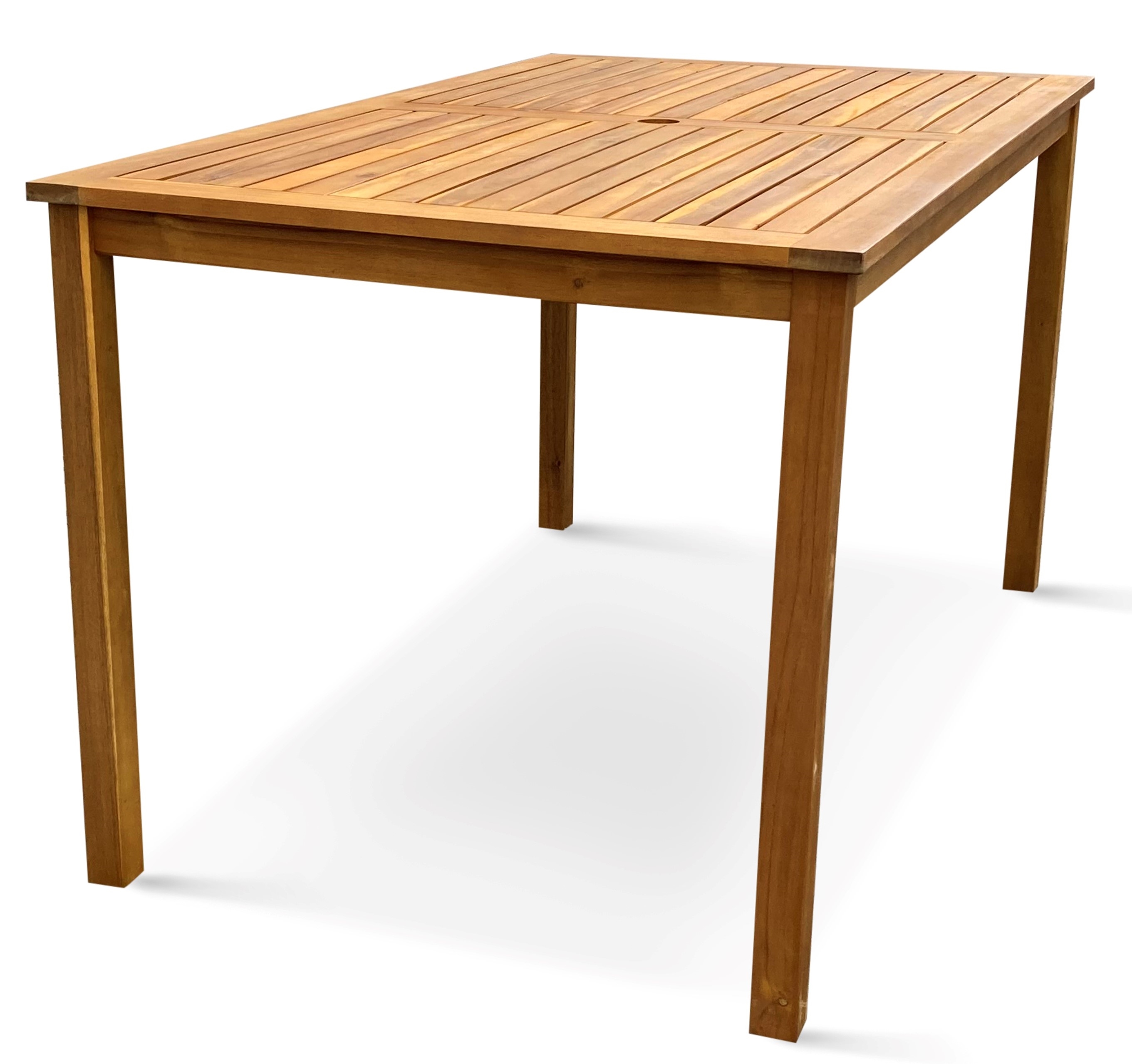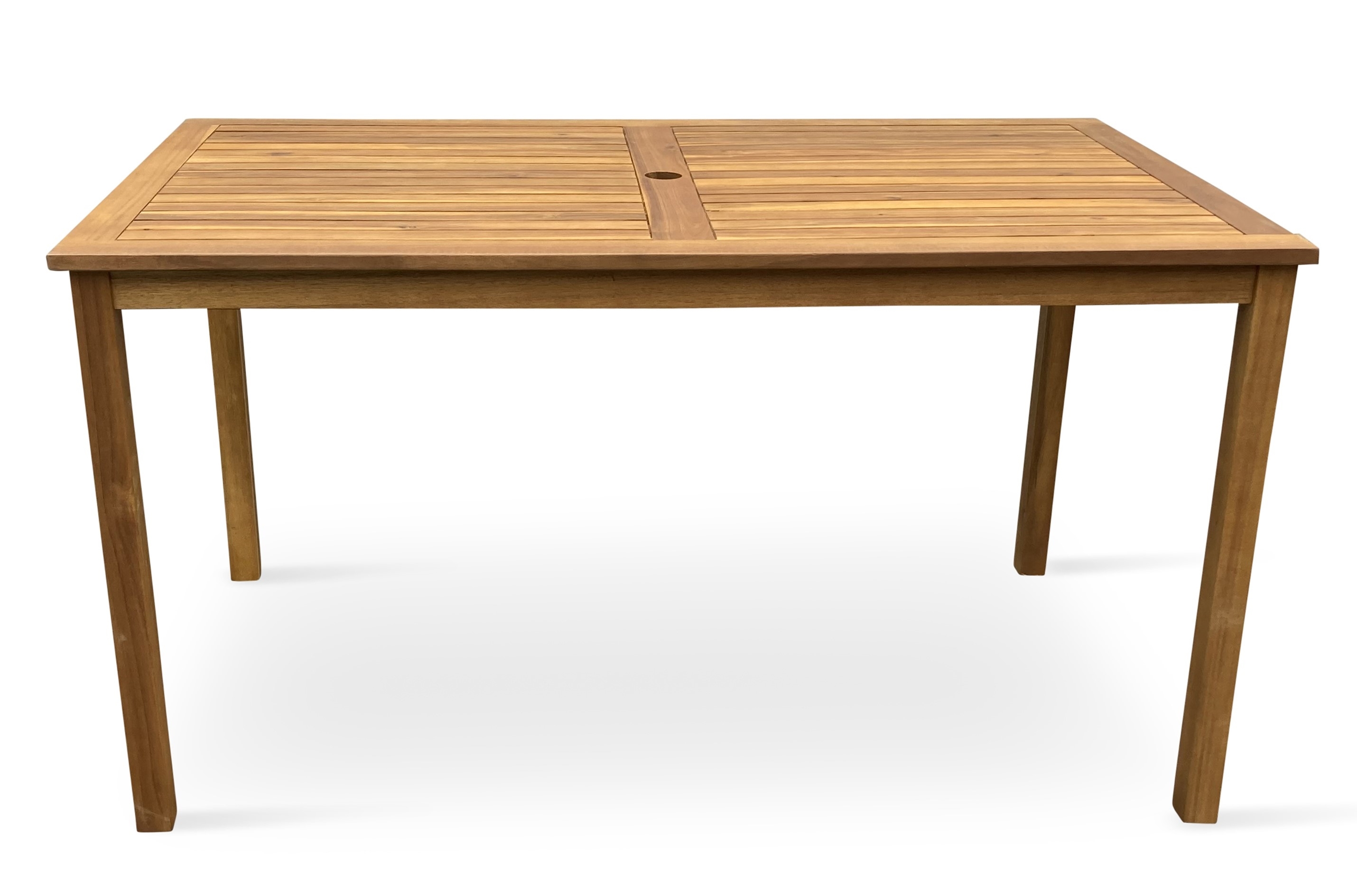 Záhradný drevený stôl Lucy z akácie je veľmi vhodným riešením pre Vašu záhradu. Stôl ponúka kvalitné spracovanie, klasický dizajn s obdĺžnikovou doskou s rozmermi 140 x 80 cm. Stôl je optimálny pre 4-6 osôb. Drevená doska stola v ideálnej výške 74 cm s praktickým otvorom pre slnečník uprostred. Vďaka nízkej hmotnosti stôl ľahko prenesiete.