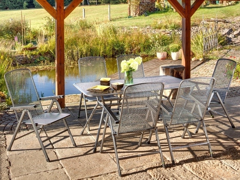 Elegantný stôl Tavio s doskou s okami v tvare kosoštvorca je vybavený pevným kovovým rámom. Stôl v tvare obdĺžnika s oblými rohmi vytvorí vkusnú zostavu napríklad v kombinácii s ťahokovými kreslami Savoy alebo Bameso. Nábytok odolný voči vode aj slnečnému žiareniu je úplne bezúdržbový.